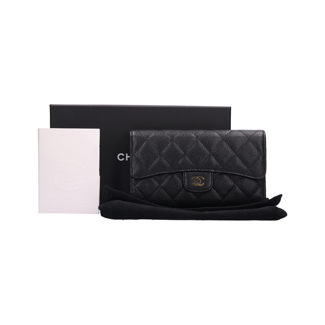 Chanel Classic Long Wallet Calfskin Black Gold Hardware