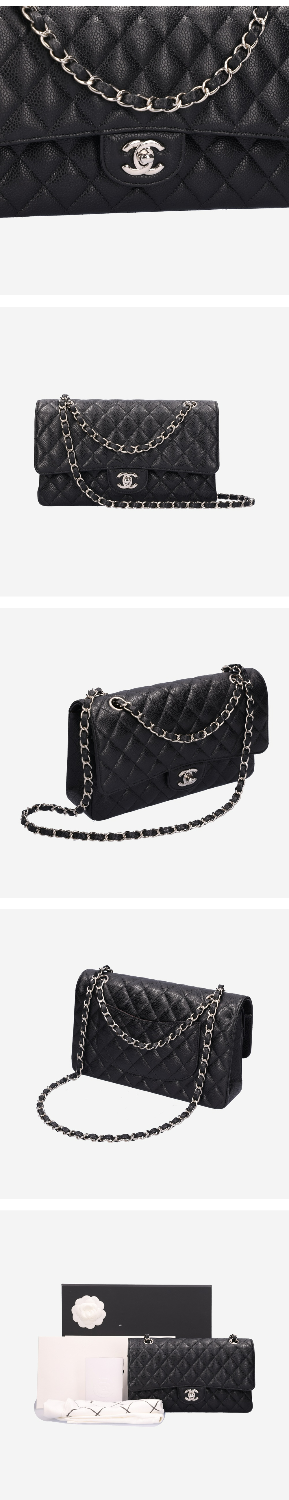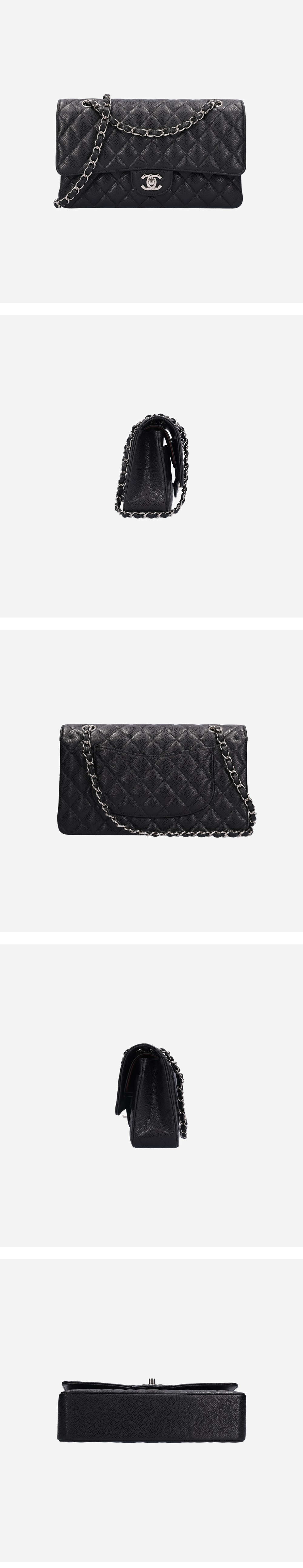 샤넬 A01112 클래식 미디움 플랩백 그레인드 카프스킨 블랙 은장