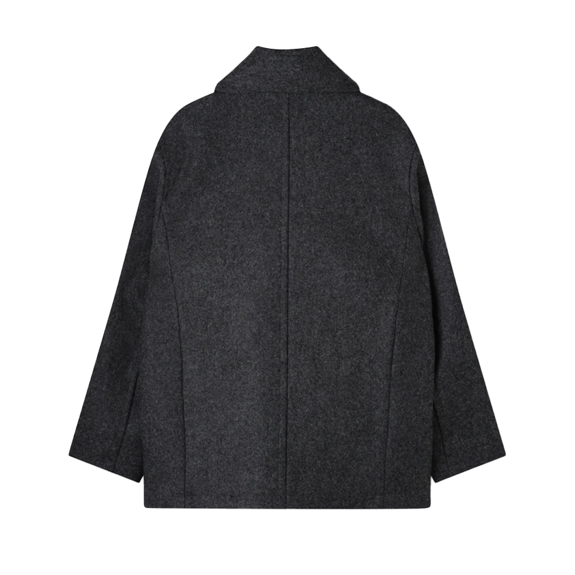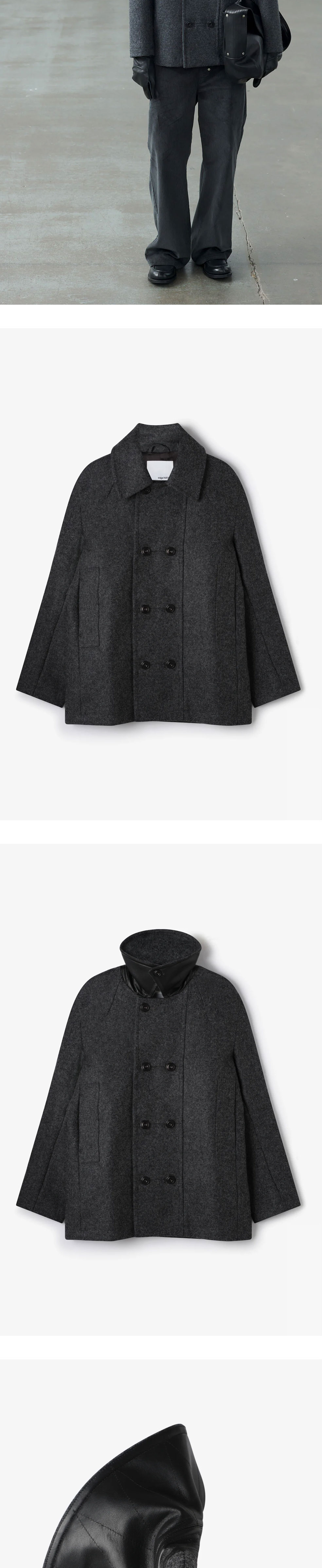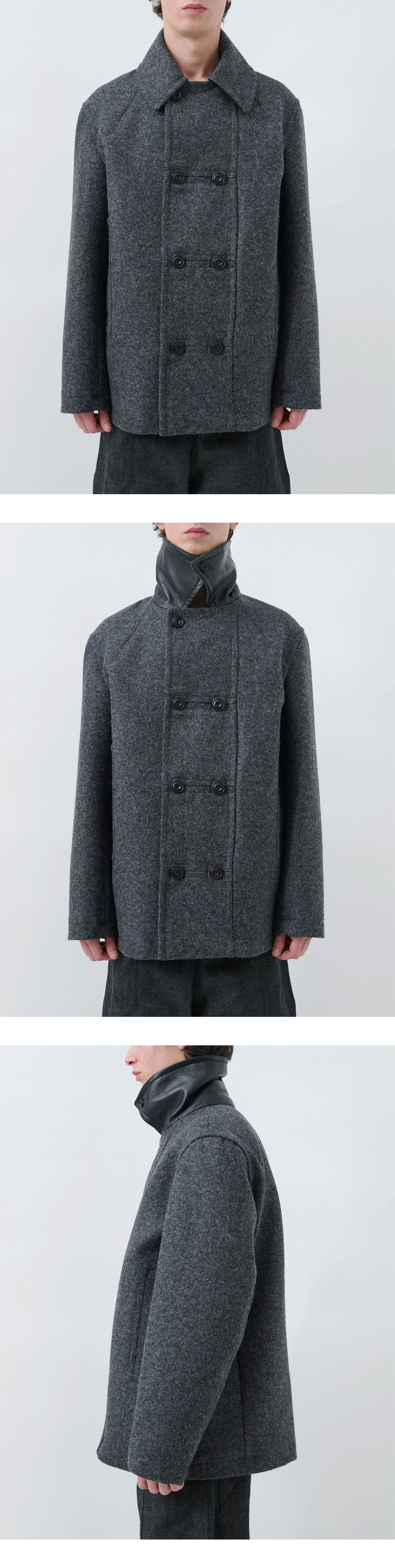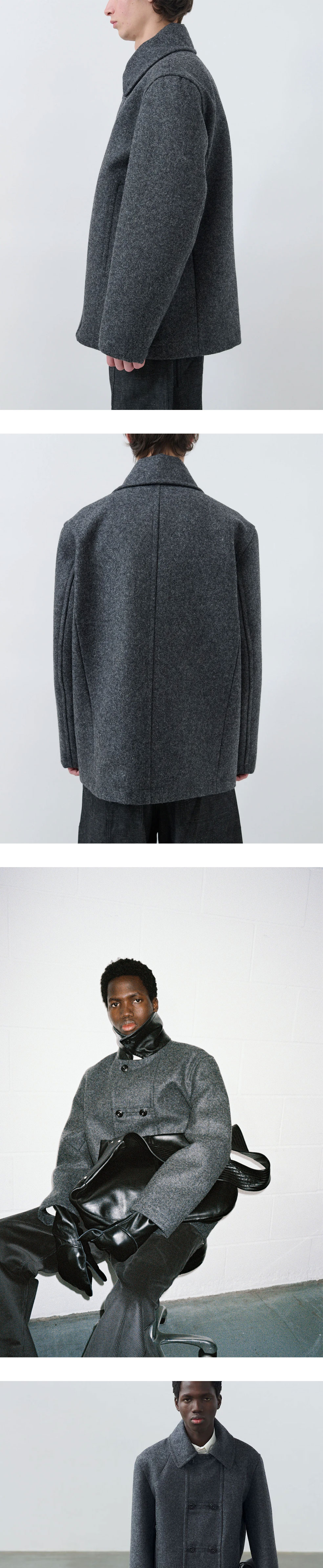클래식함이 매력인 세이지 네이션 피코트입니다. - 클래식한 브리티시 멜튼 울 소재 사용 - 더블 브레스트 버튼 클로저 - 램스 레더 언더칼라가 더해진 와이드 칼라 디테일 - 측면 웰트 포켓 - 원산지: 영국