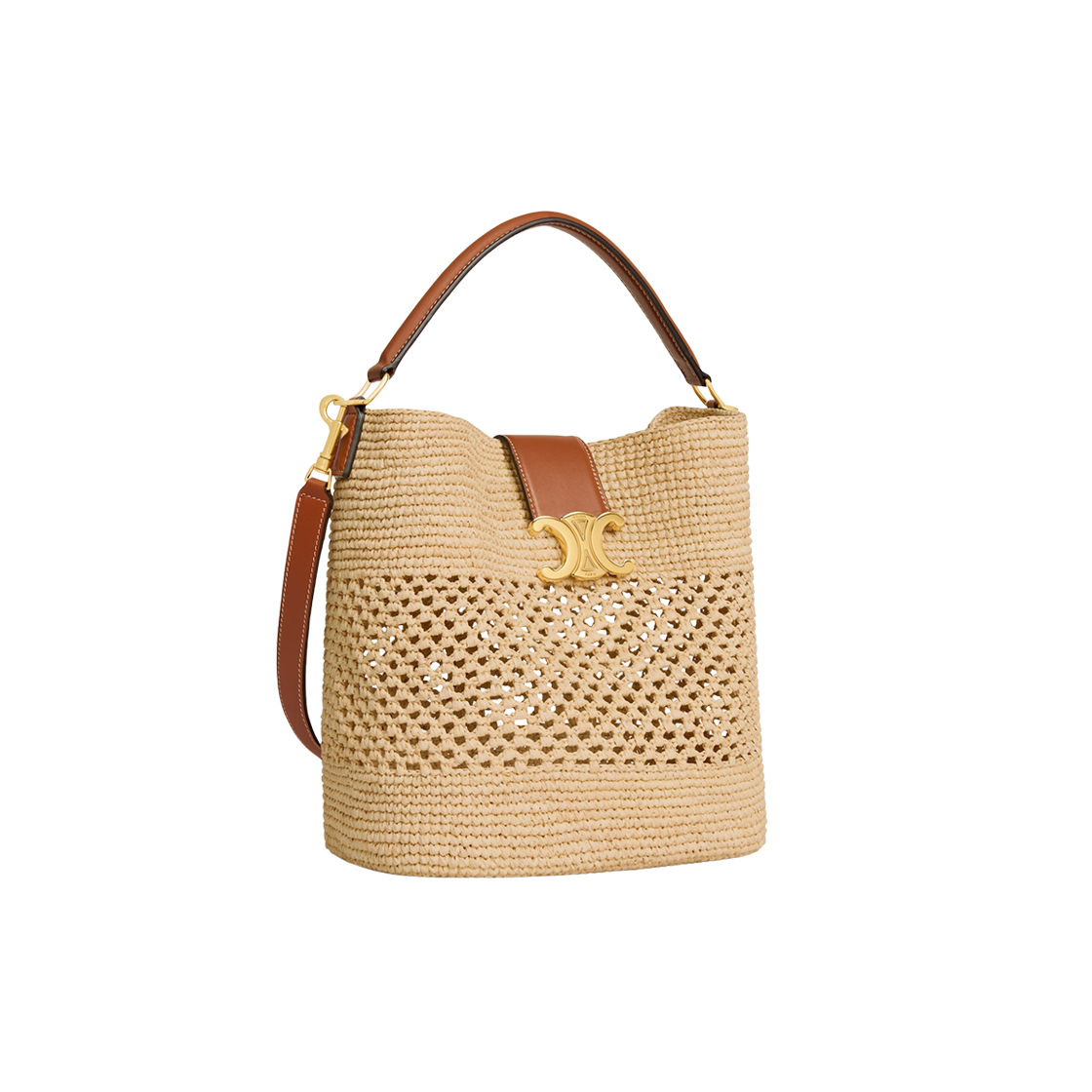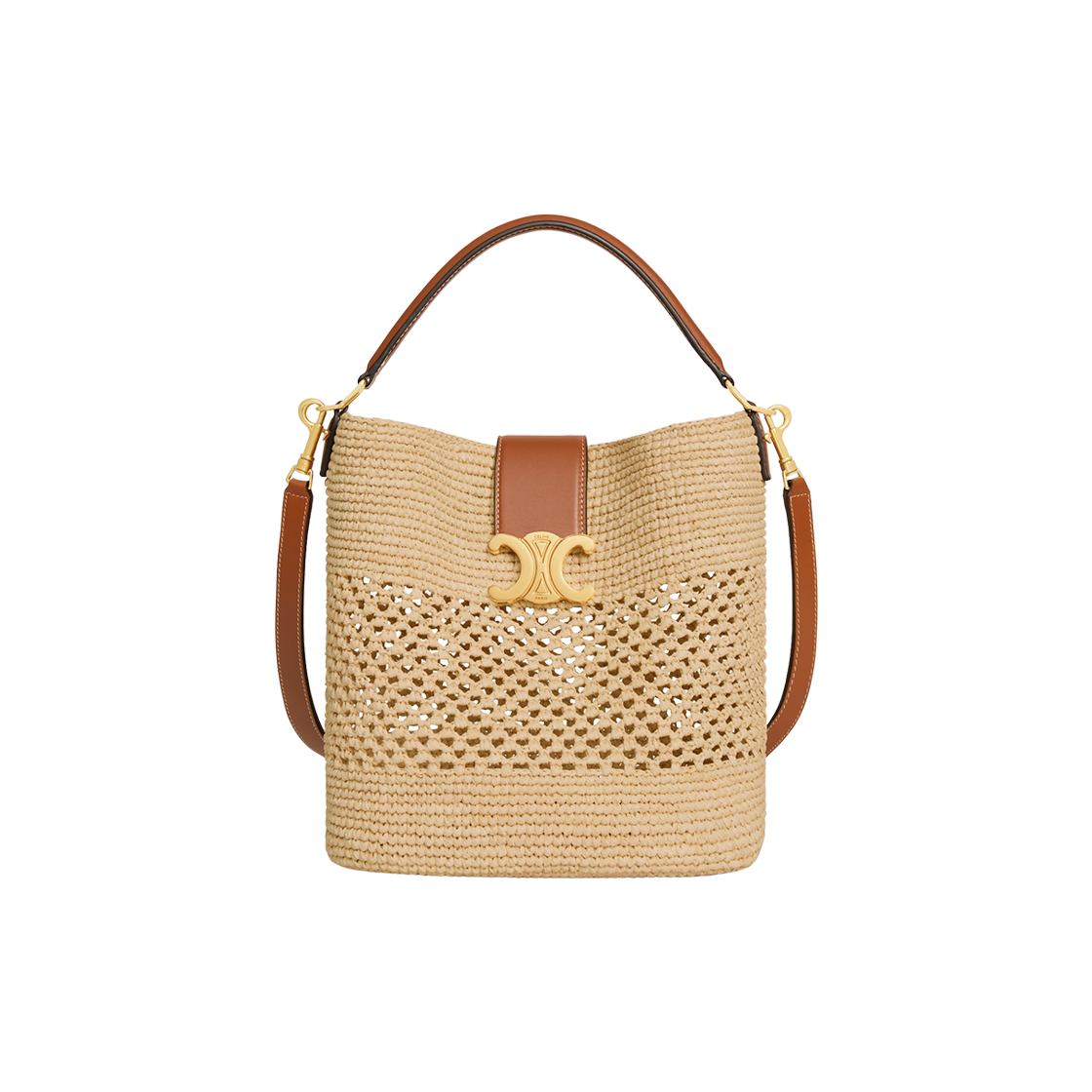 셀린느 미디움 루이즈 버킷 라피아 카프스킨 내츄럴 탄