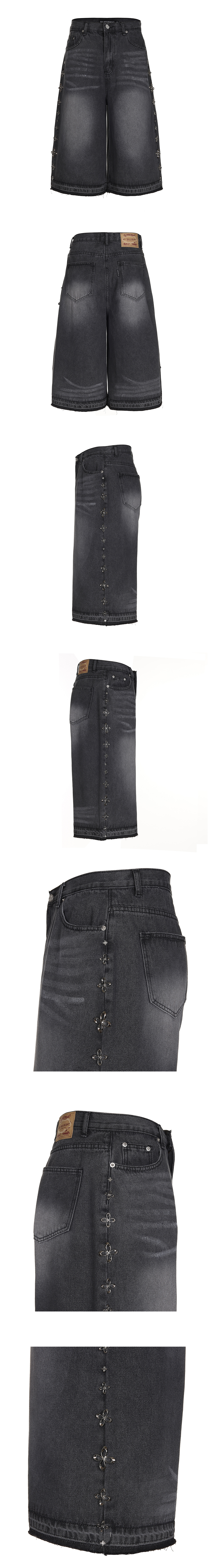써저리 클로버 라인 데님 버뮤다 팬츠 블랙