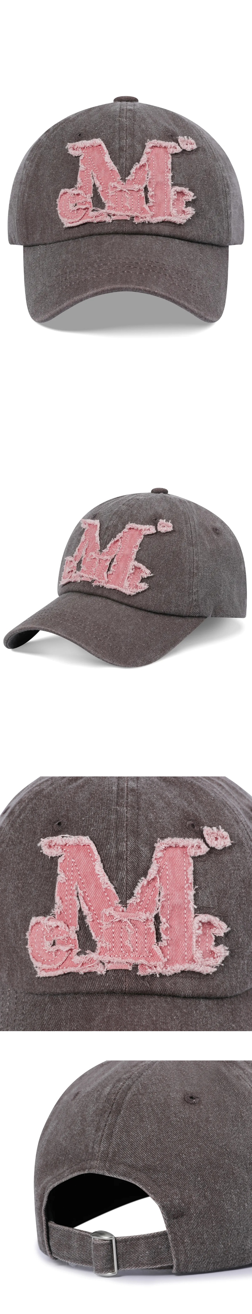 무센트 빈티지 워싱 아플리케 볼캡 워시드 초코 (핑크 로고)