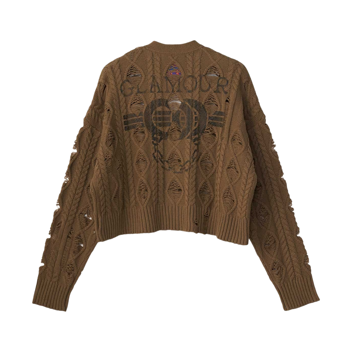 (W) Hysteric Glamour Hysteric Handcuff Short Distressed Cardigan Kahki