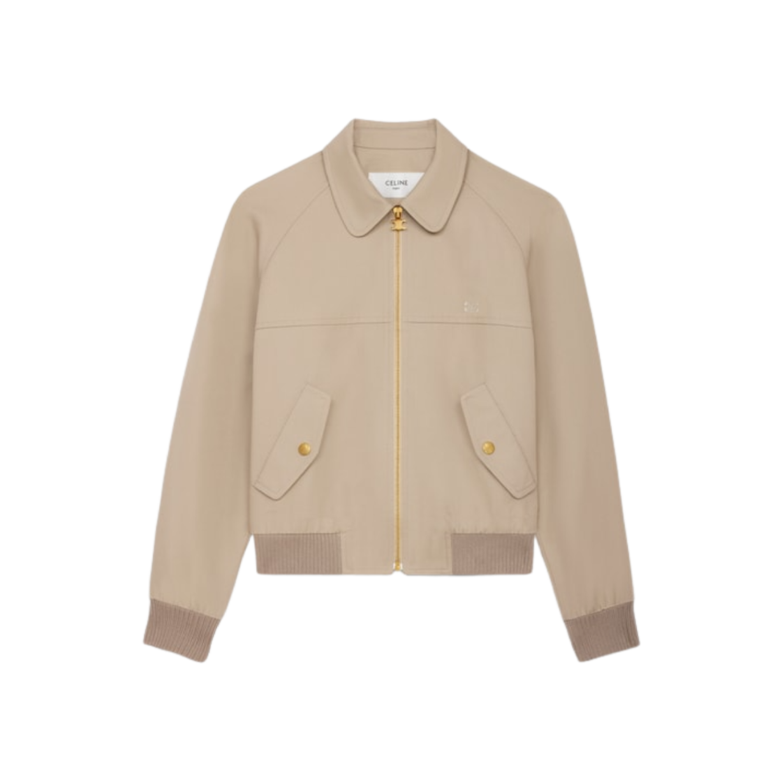 (W) Celine Triomphe Blouson Jacket in Cotton Gabardine Beige