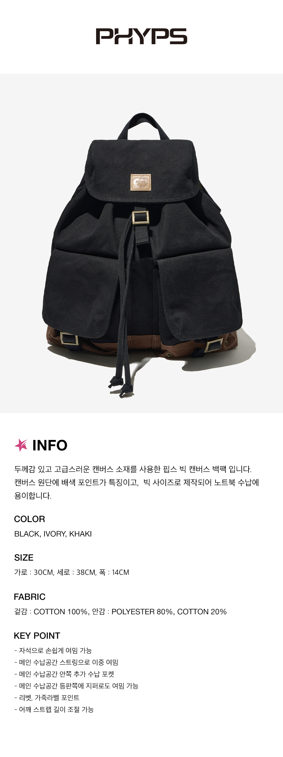 피지컬 디파트먼트 캔버스 버클 백팩 블랙