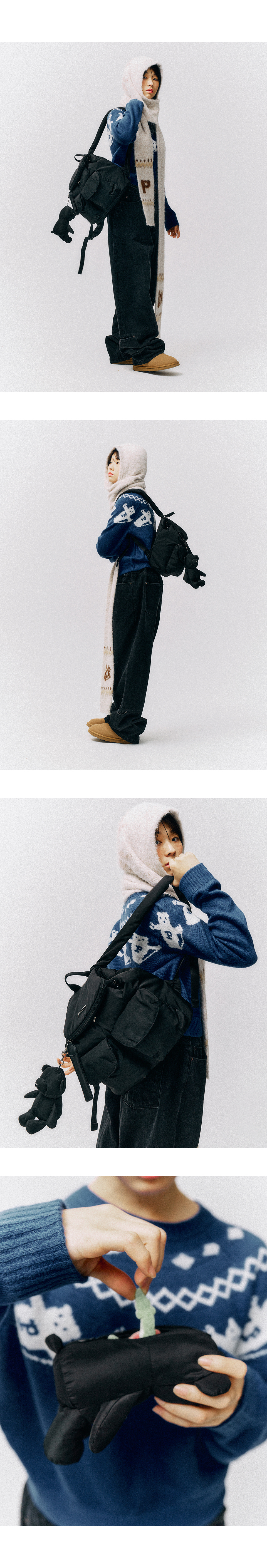 피지컬 디파트먼트 베어키링 패딩 백팩 블랙
