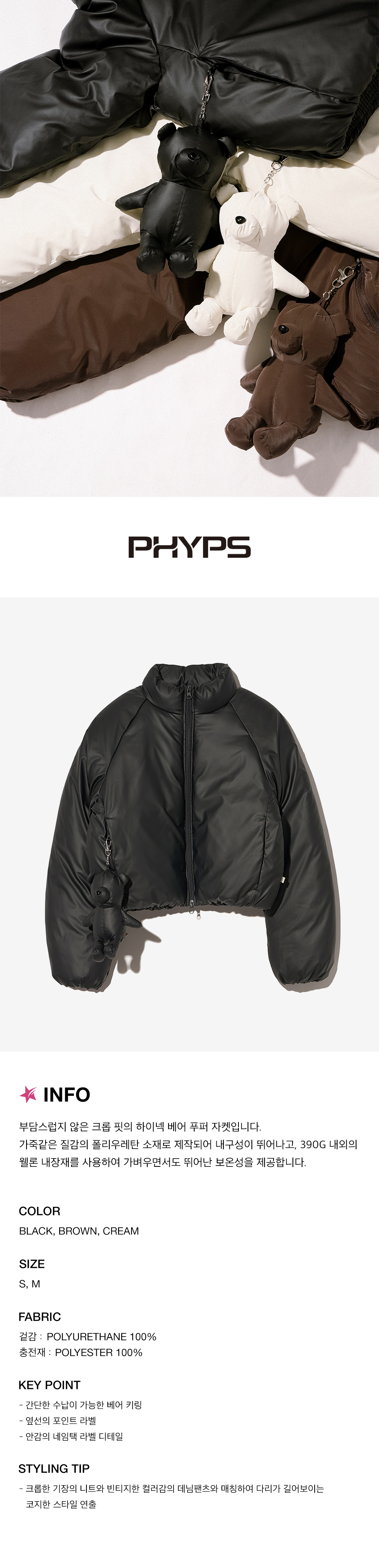 피지컬 디파트먼트 우먼즈 베어 푸퍼 자켓 블랙