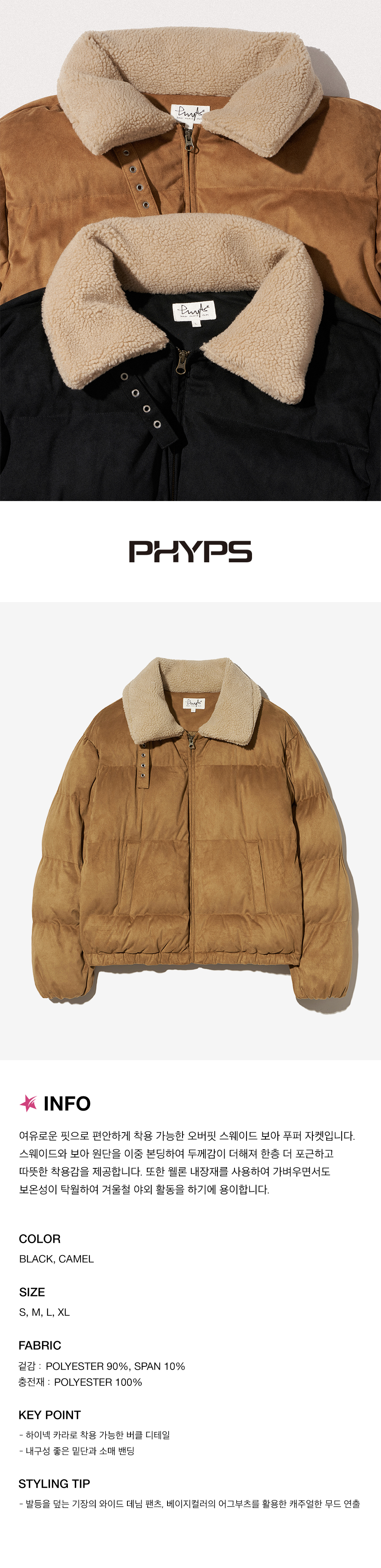 피지컬 디파트먼트 스웨이드 보아 카라 푸퍼패딩 카멜