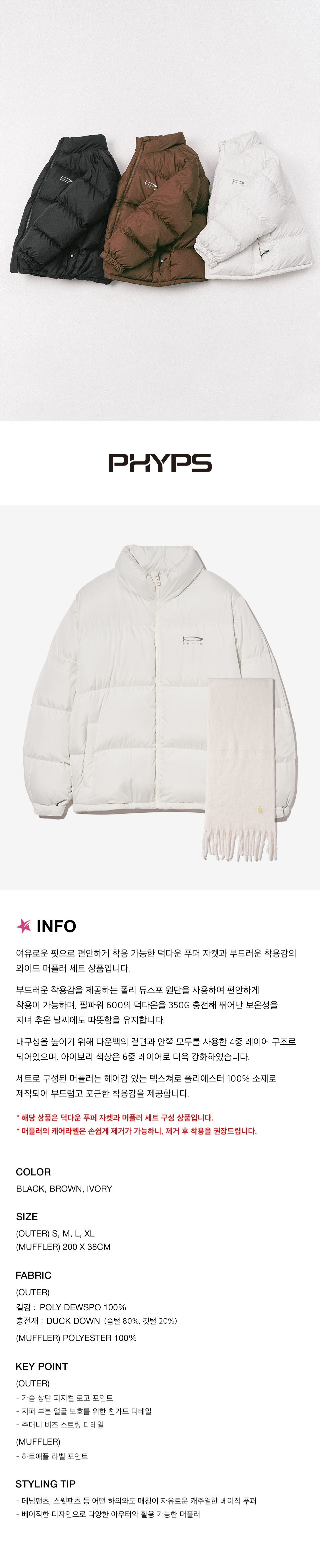 피지컬 디파트먼트 (레이어드)덕다운 머플러 푸퍼 자켓 아이보리