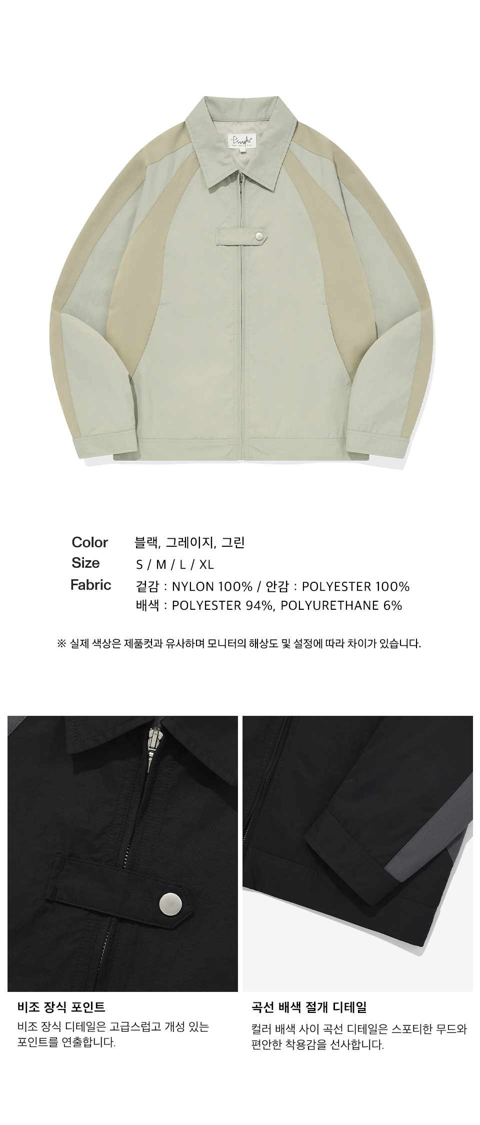 피지컬 디파트먼트 컬러블럭 커브 트러커 자켓 그레이지