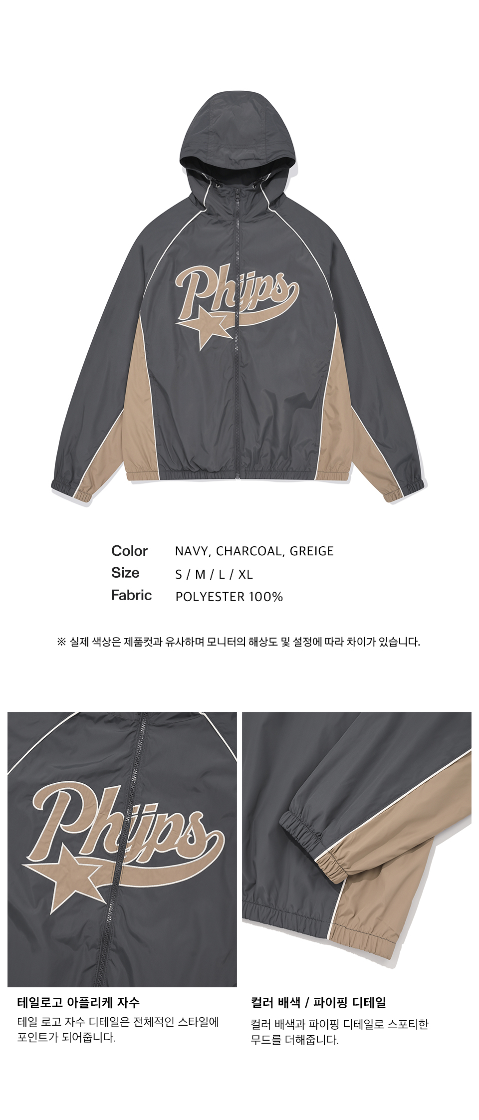 Phyps Dept Piping Star Tail Hooded Track Jacket Charcoal
