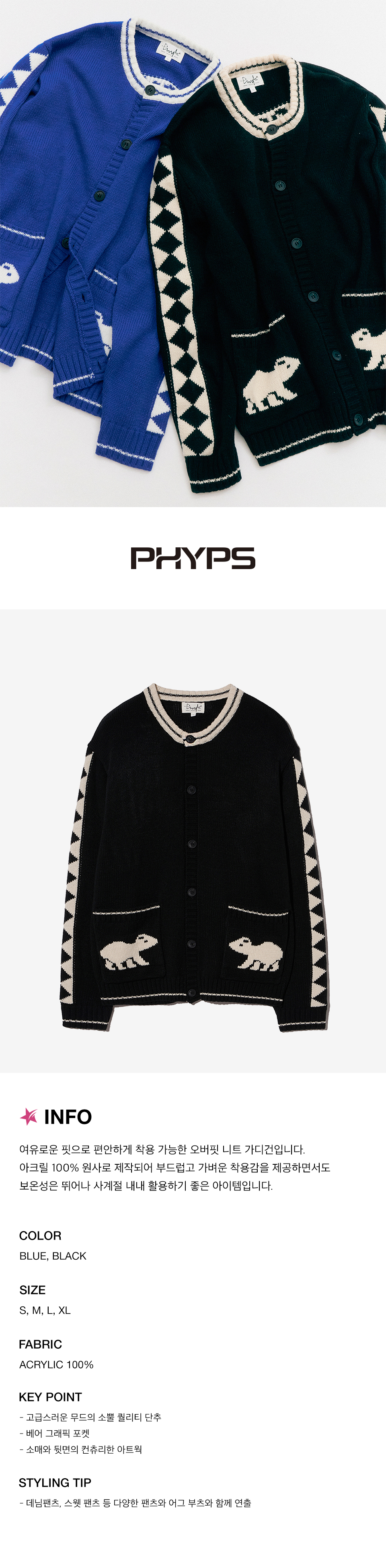 피지컬 디파트먼트 베어 라운드넥 가디건 블랙