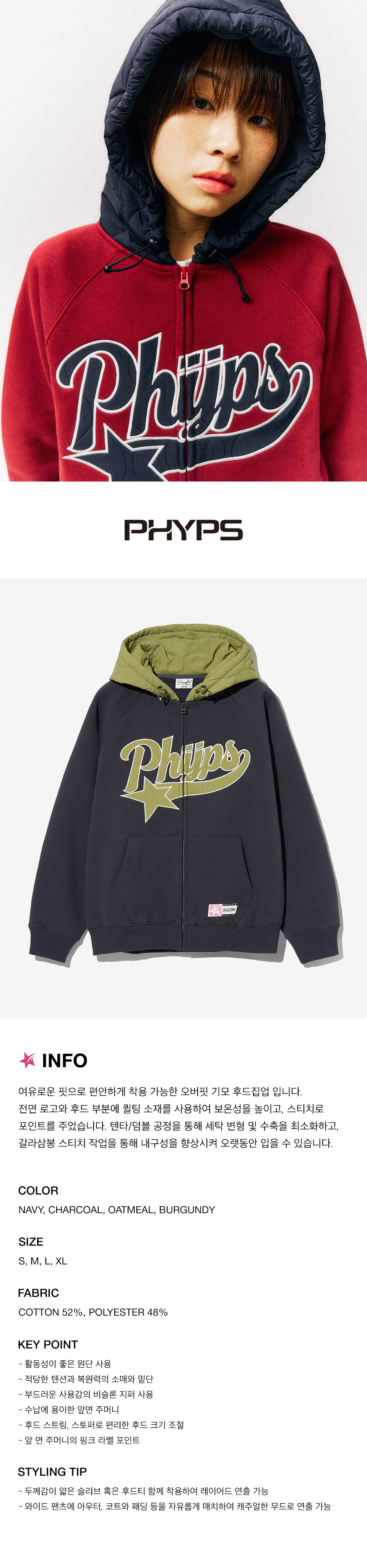 Phyps Dept Star Tail Quilting Hooded Zip-Up Charcoal