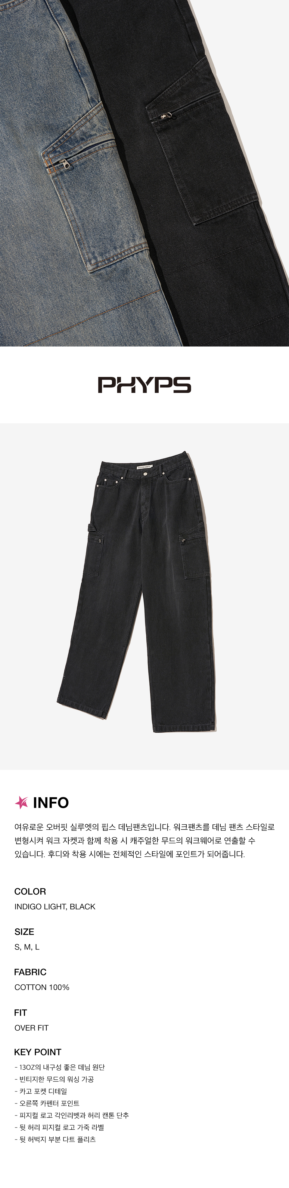 피지컬 디파트먼트 카펜터 지퍼카고 데님팬츠 블랙