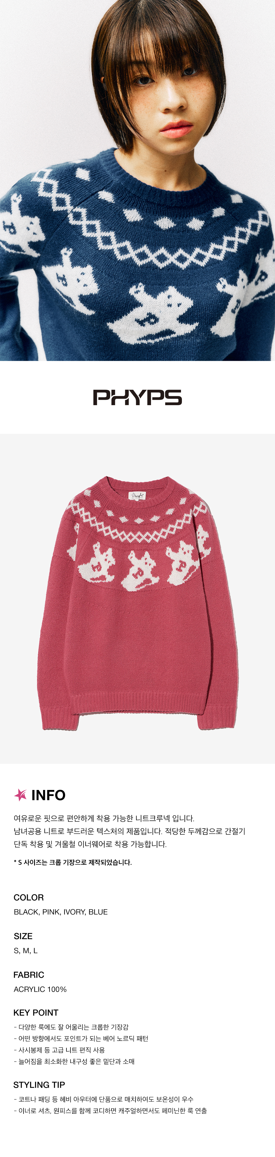 피지컬 디파트먼트 요가 베어 노르딕 니트 핑크