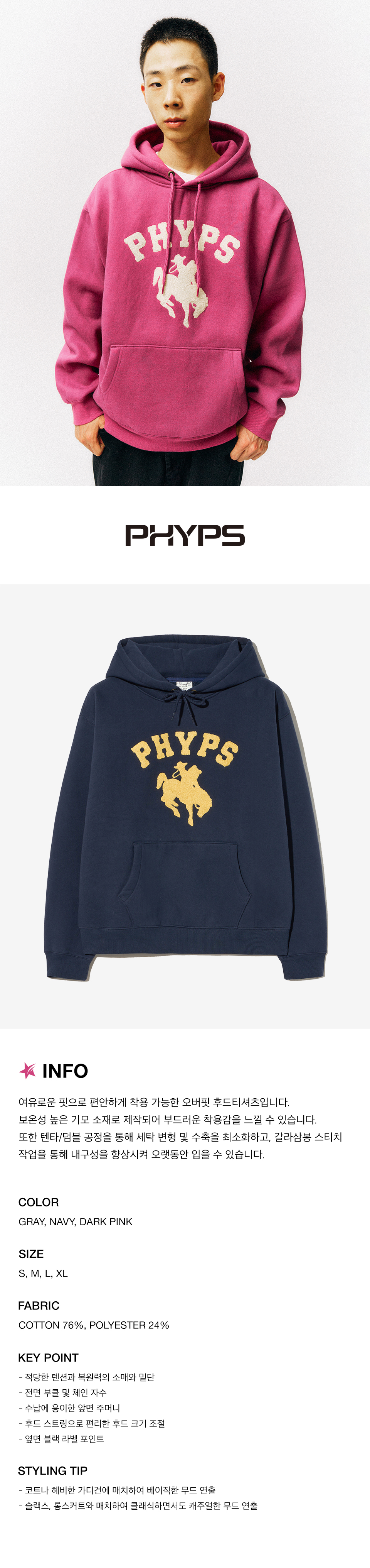 피지컬 디파트먼트 홀스 라이딩 베어 후드 네이비