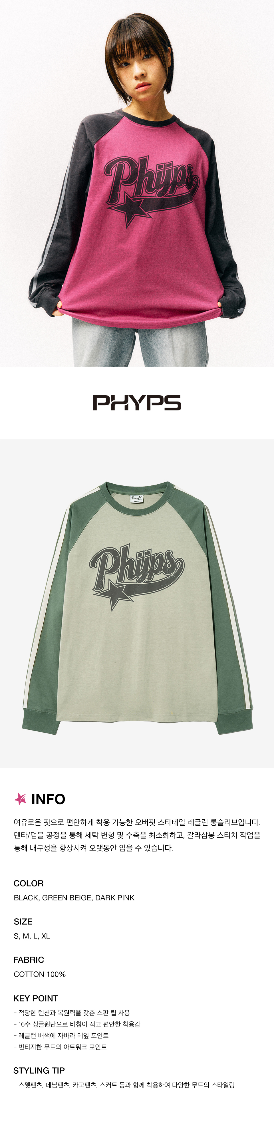 피지컬 디파트먼트 스타테일 컬러블럭 롱슬리브 그린 베이지
