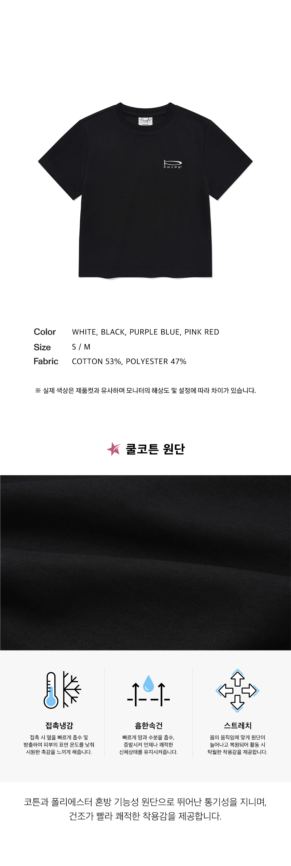 피지컬 디파트먼트 우먼즈 쿨코튼 슬림핏 반팔티셔츠 블랙