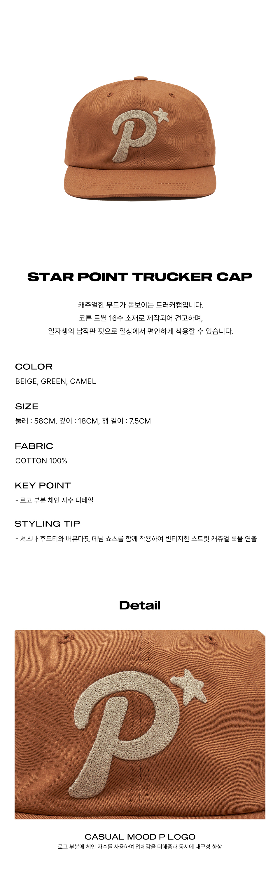 피지컬 디파트먼트 스타 포인트 트러커캡 카멜