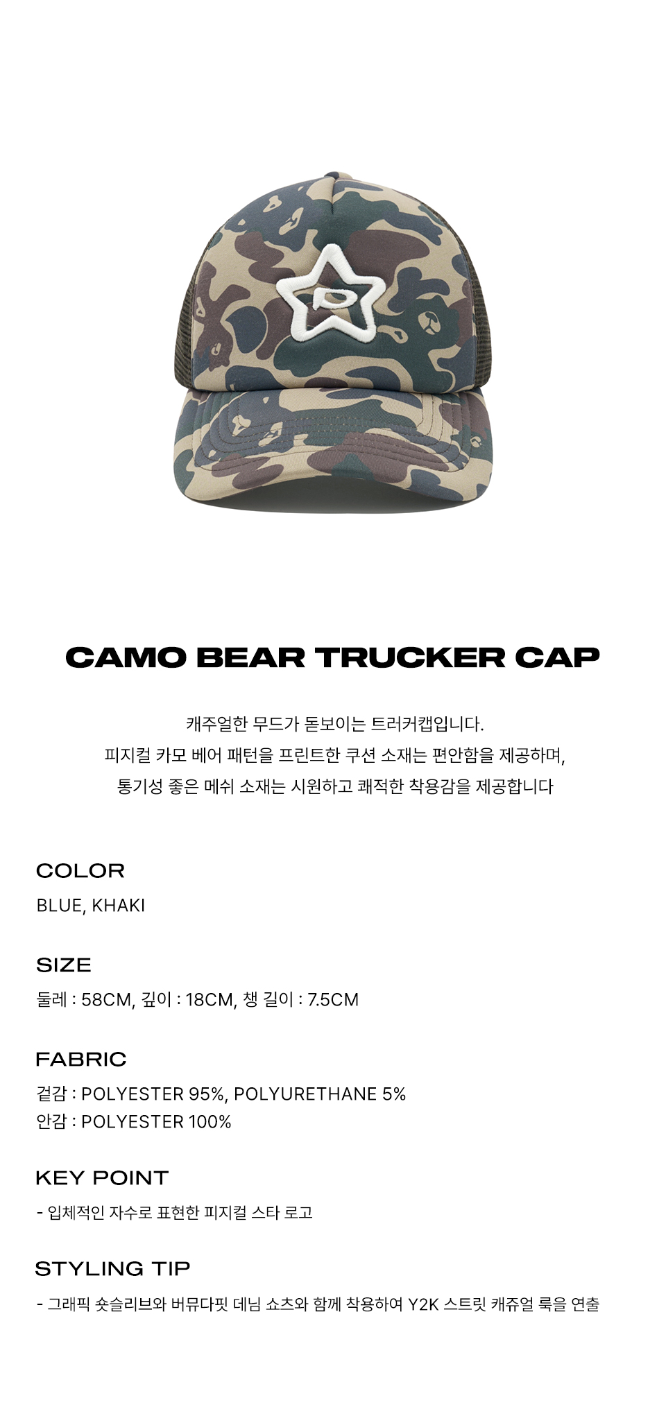 피지컬 디파트먼트 카모 베어 트러커 캡 카키