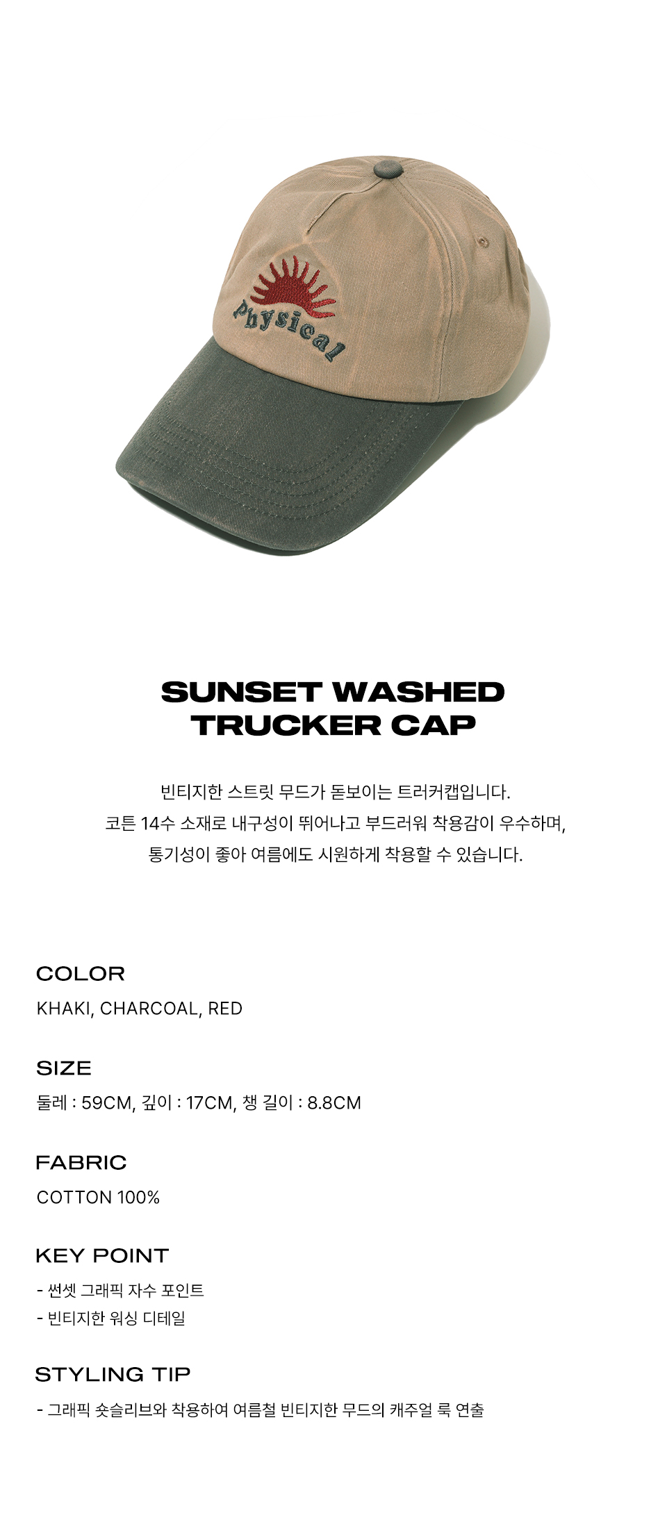 피지컬 디파트먼트 썬셋 워시드 트러커캡 카키