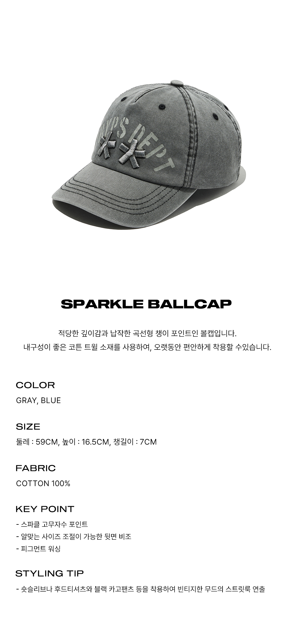 피지컬 디파트먼트 스파클 로고 볼캡 그레이