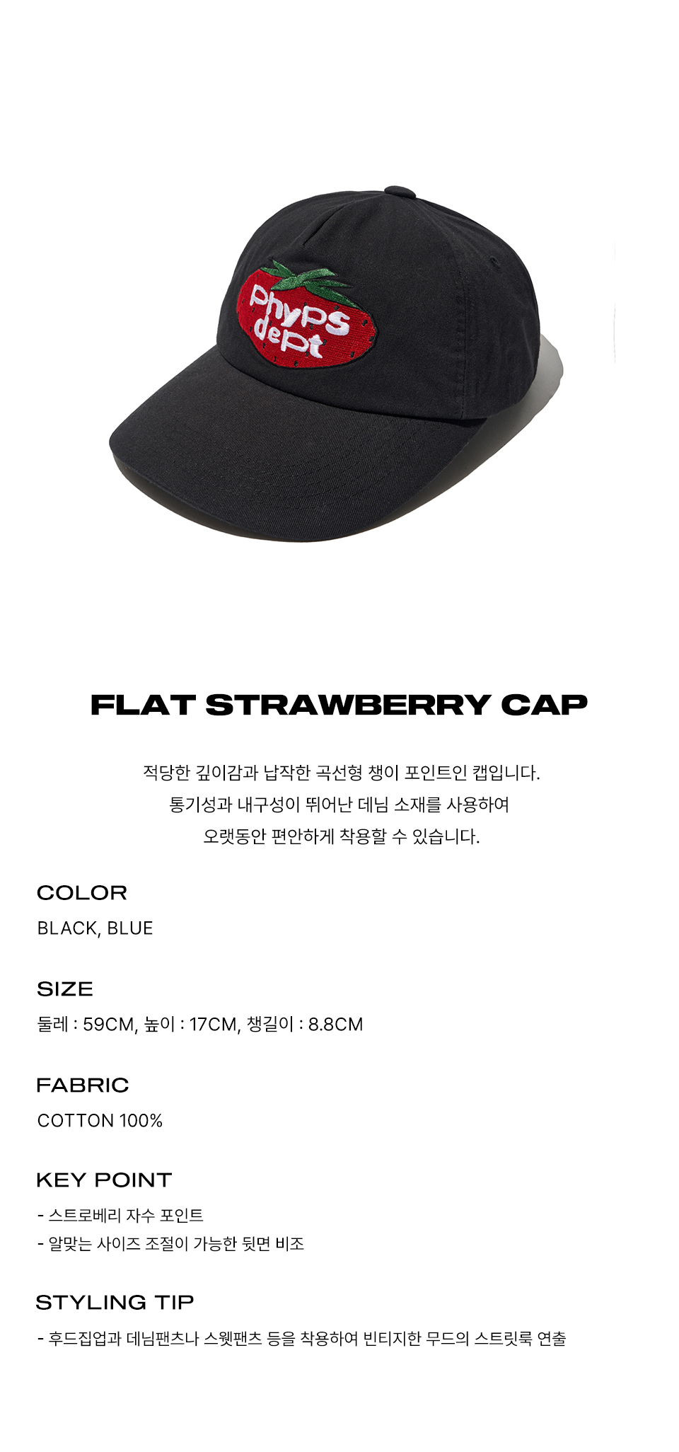 피지컬 디파트먼트 플랫 스트로베리 볼캡 블랙