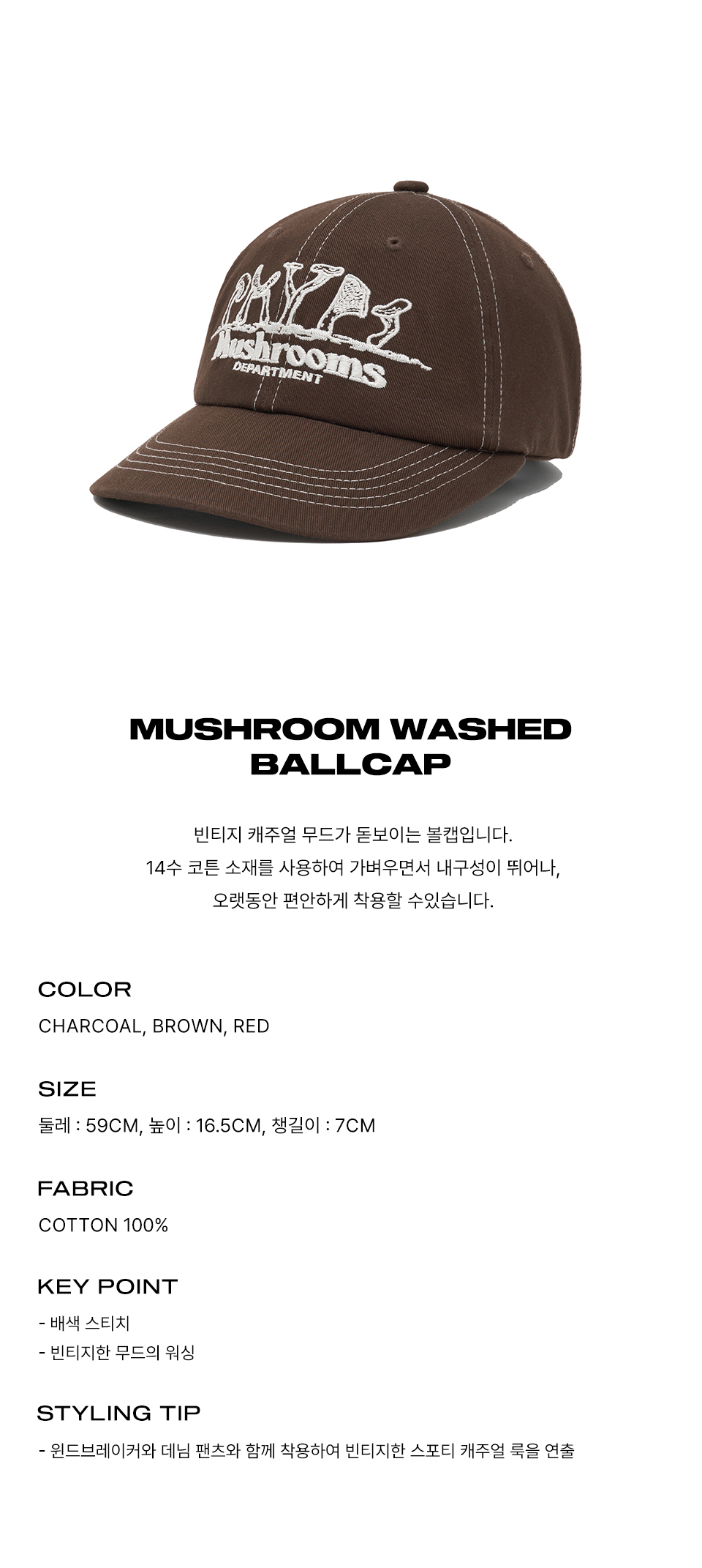 피지컬 디파트먼트 머쉬룸 워시드 볼캡 브라운
