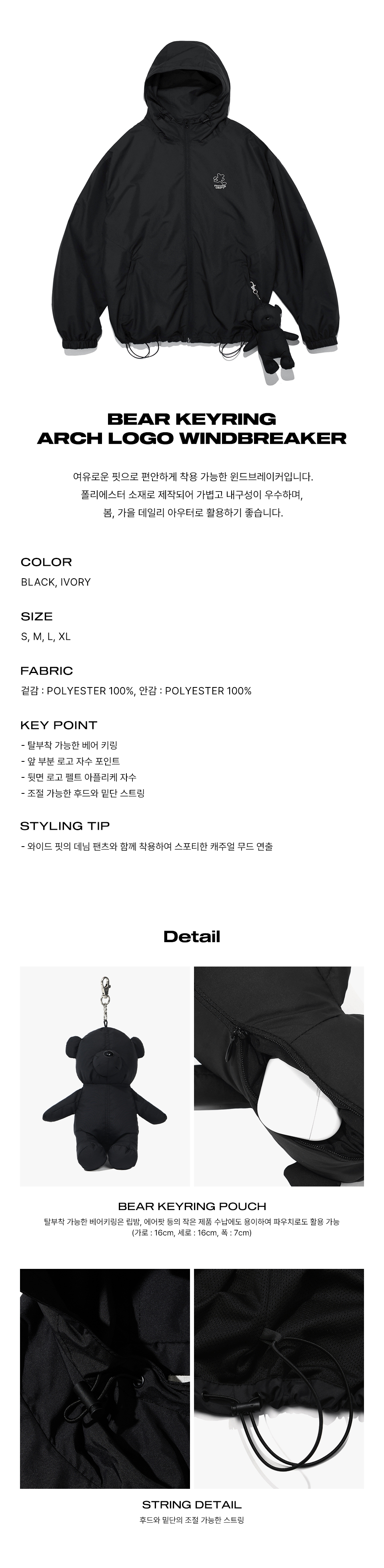 피지컬 디파트먼트 베어키링 아치로고 윈드 브레이커 블랙