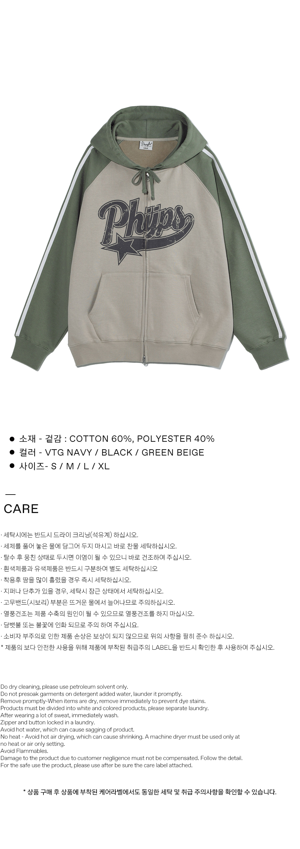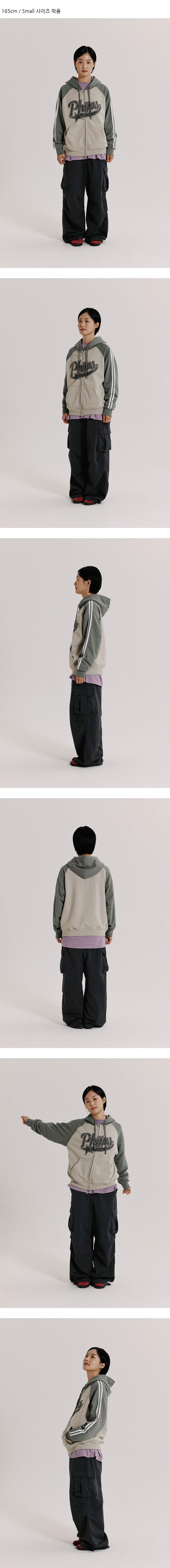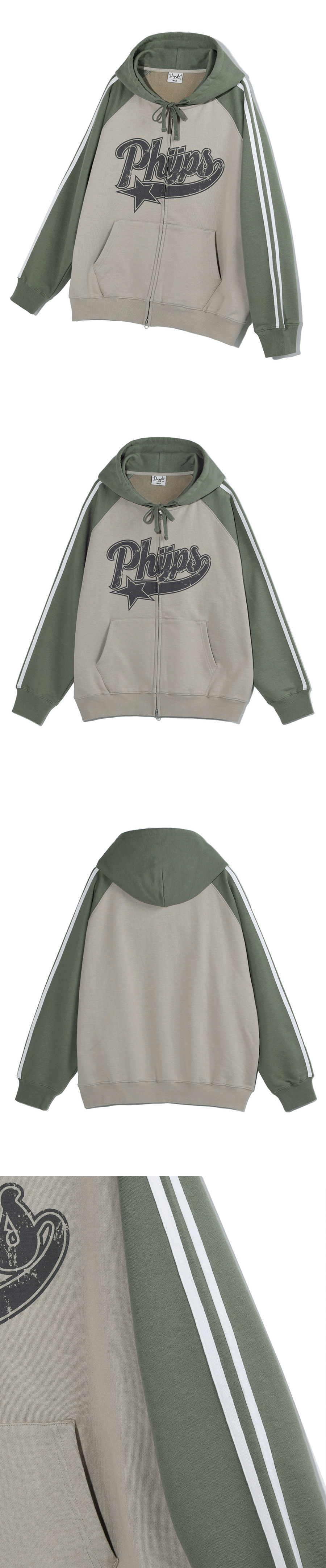 피지컬 디파트먼트 스타테일 컬러블럭 후드집업_그린 베이지