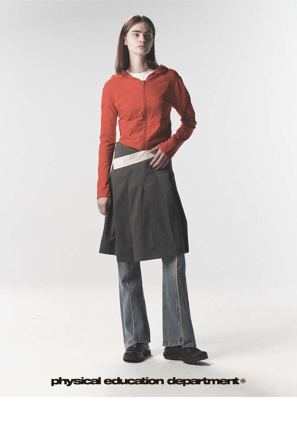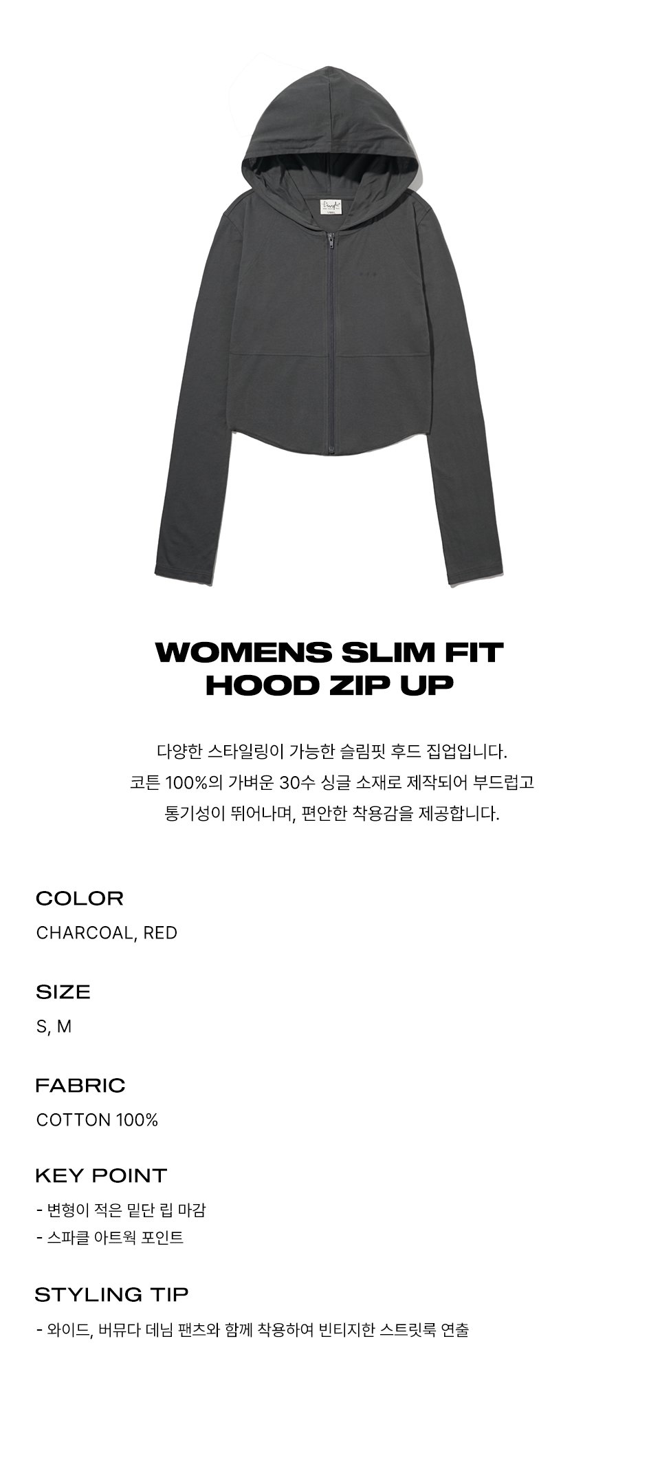 피지컬 디파트먼트 우먼즈 슬림핏 크롭 후드 집업_차콜