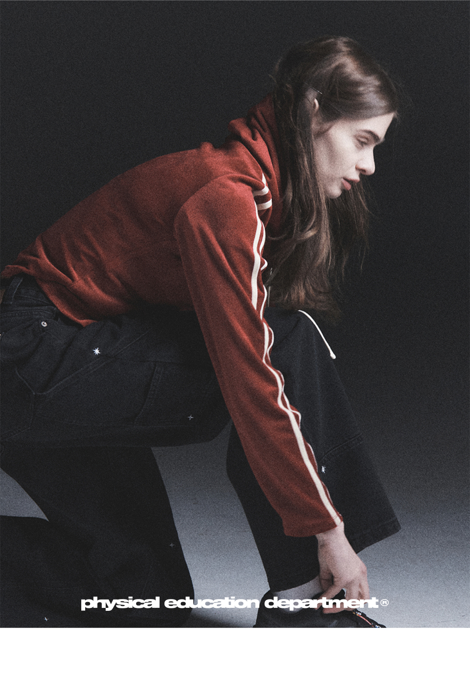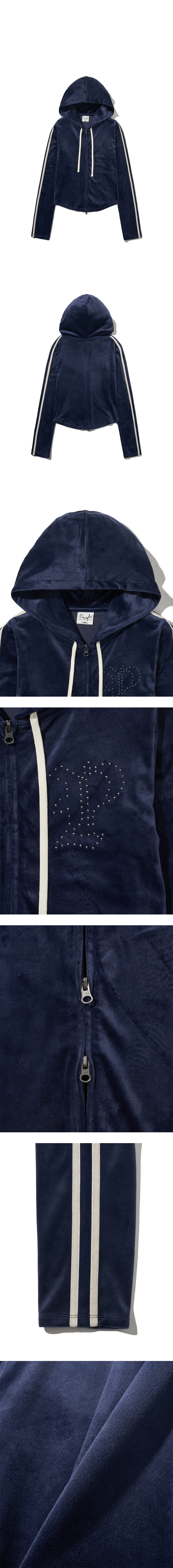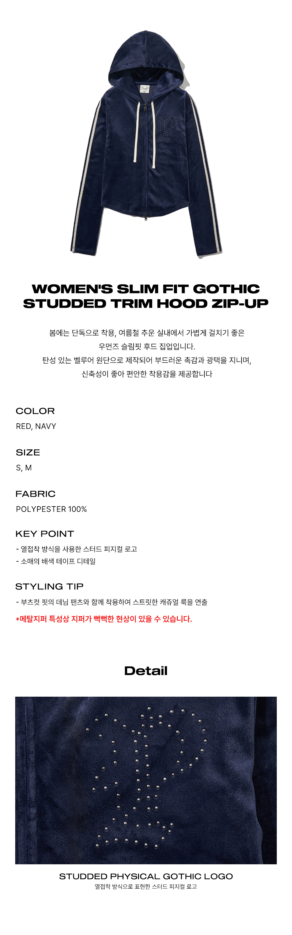 피지컬 디파트먼트 우먼즈 스터드 고딕 로고 슬림핏 후드집업_네이비