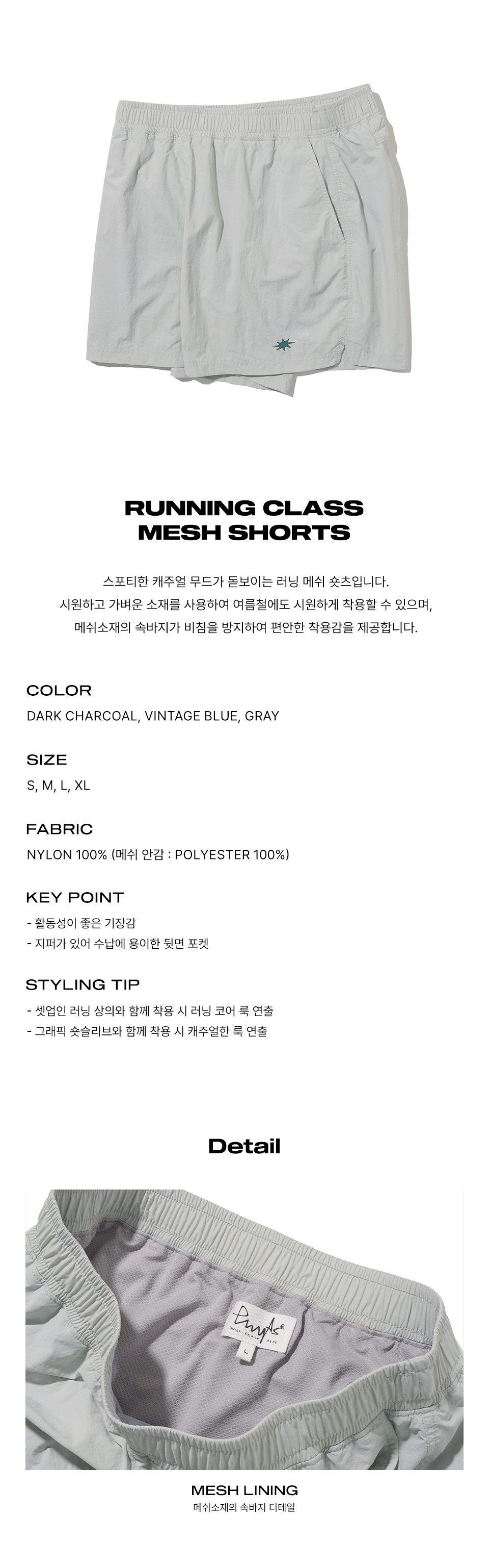 피지컬 디파트먼트 러닝 클래스 메쉬 쇼츠_솔리드 그레이