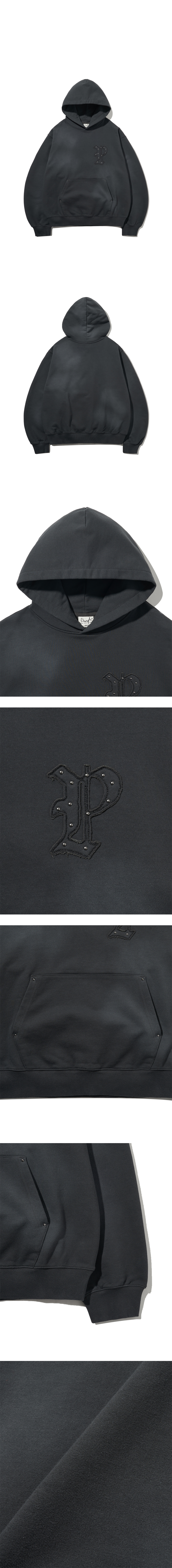 Phyps Dept Studded Gothic Logo Applique Spray Dying Hoodie Dark Charcoal