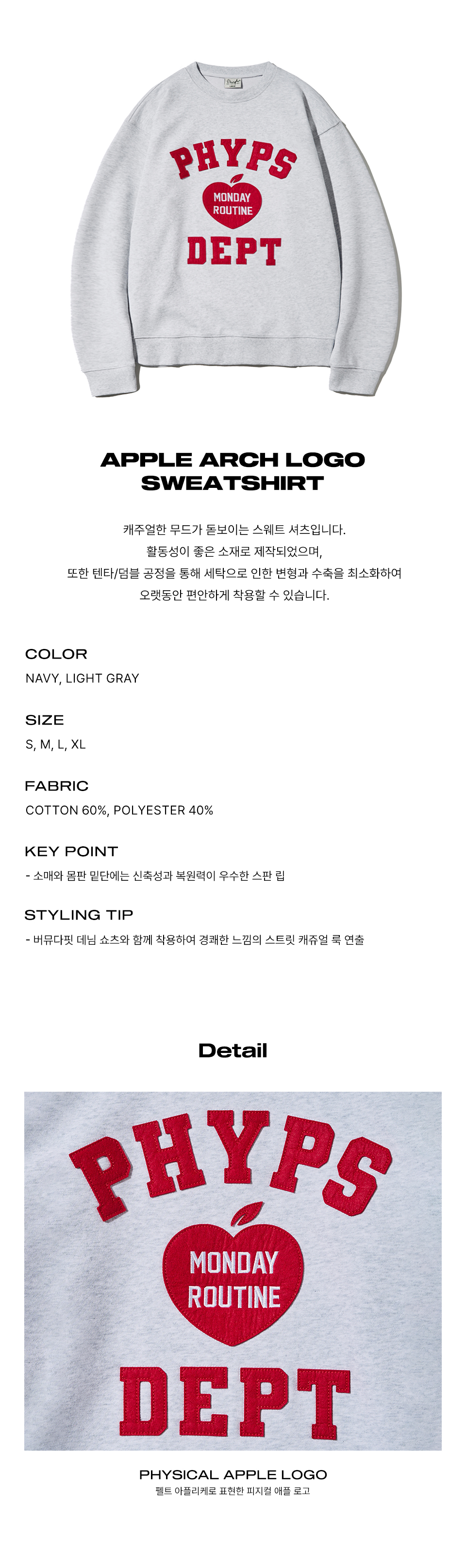 피지컬 디파트먼트 애플 아치로고 스웨트셔츠 라이트 그레이