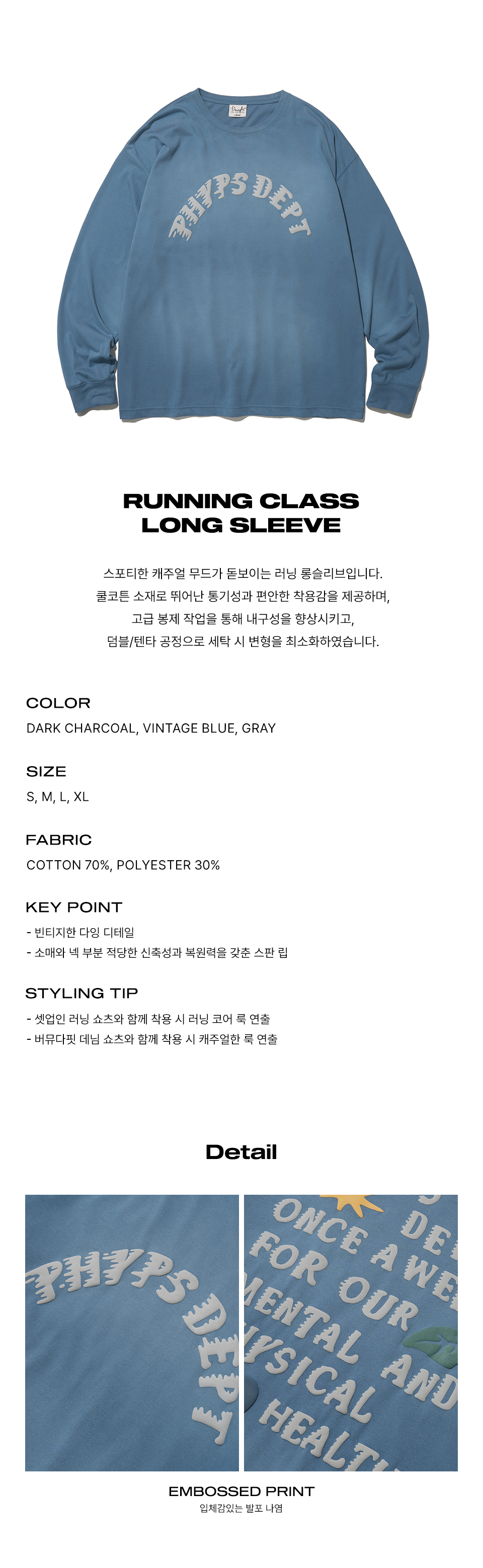 피지컬 디파트먼트 쿨코튼 러닝 클래스 롱슬리브 빈티지 블루