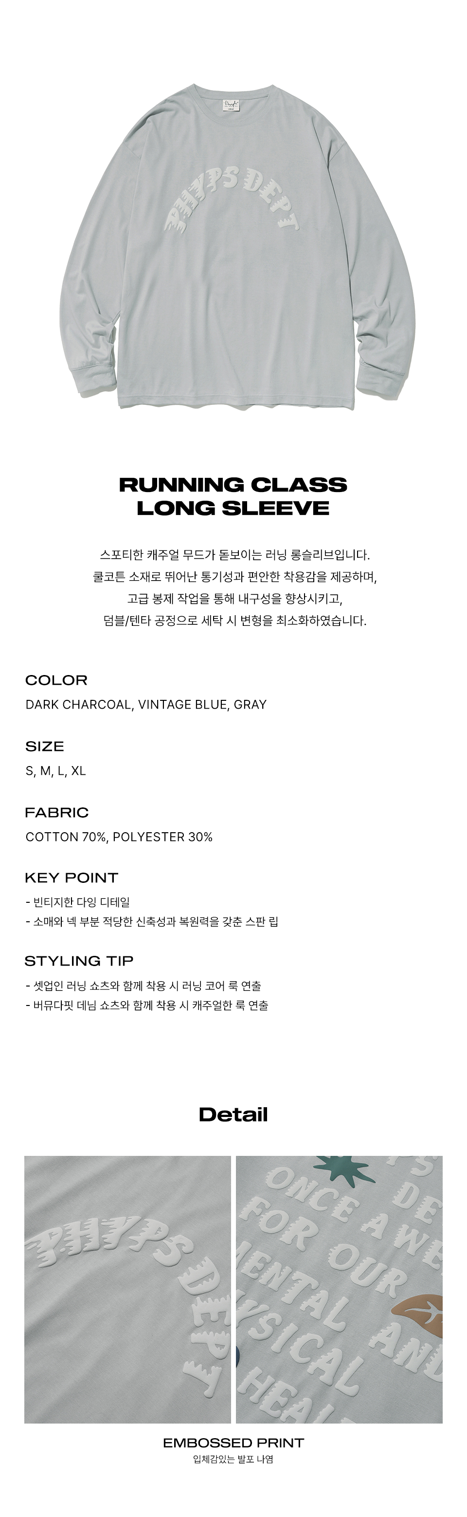 피지컬 디파트먼트 쿨코튼 러닝 클래스 롱슬리브 솔리드 그레이
