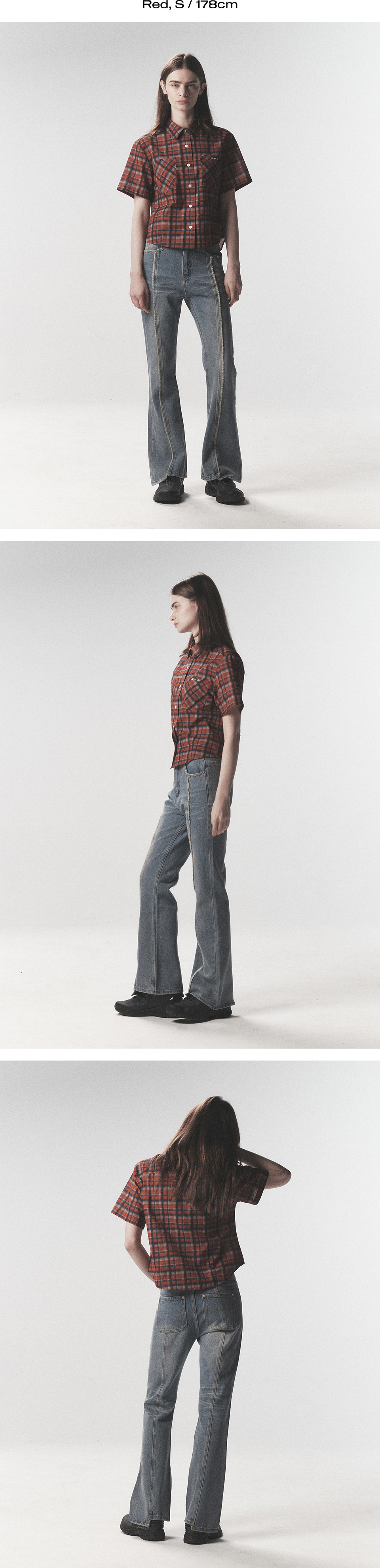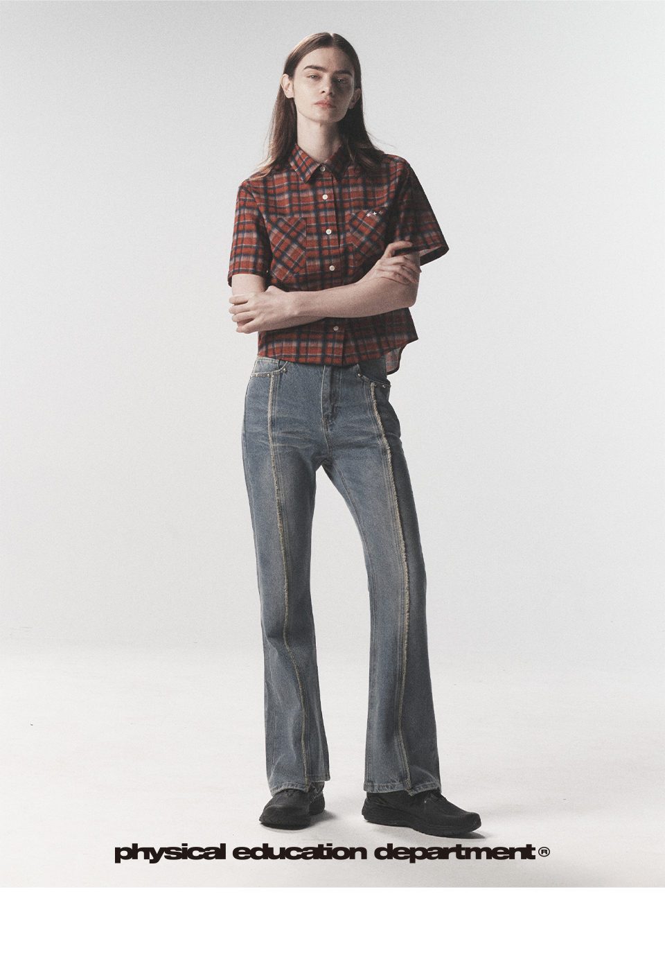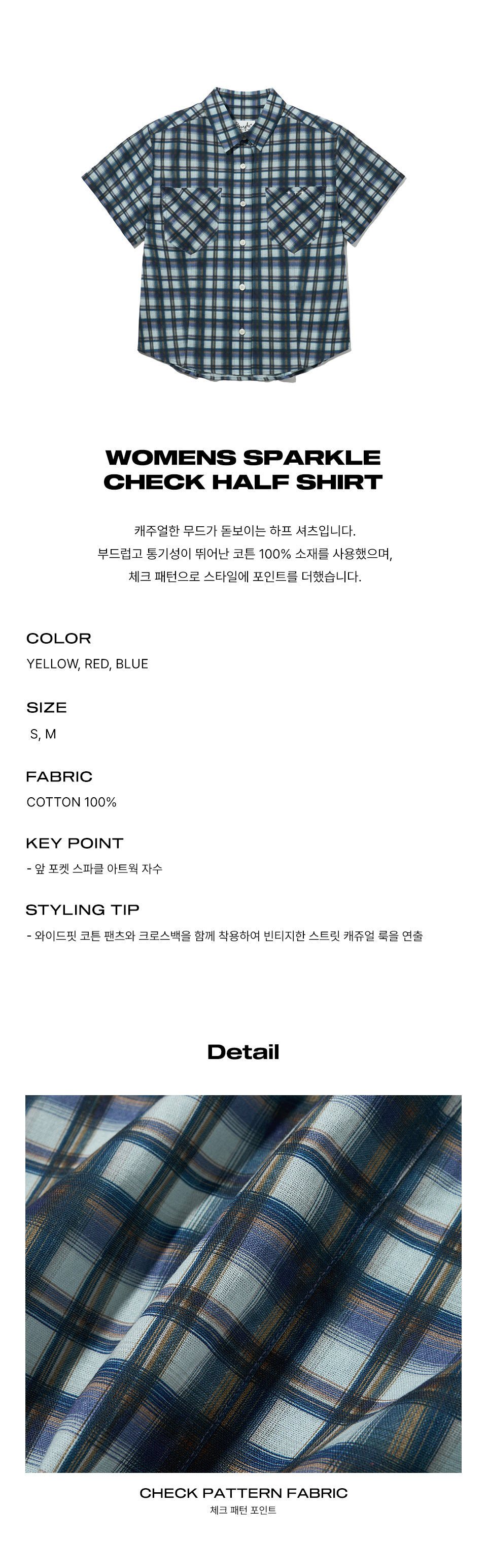 피지컬 디파트먼트 우먼즈 스파클 체크 하프 셔츠 블루