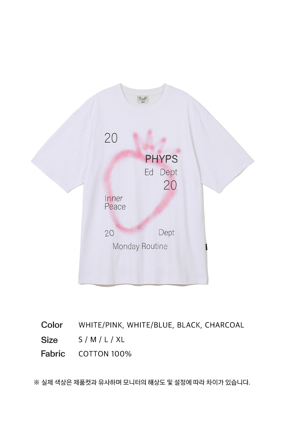 피지컬 디파트먼트 스프레이 빅 스트로베리 반팔티셔츠 화이트/핑크