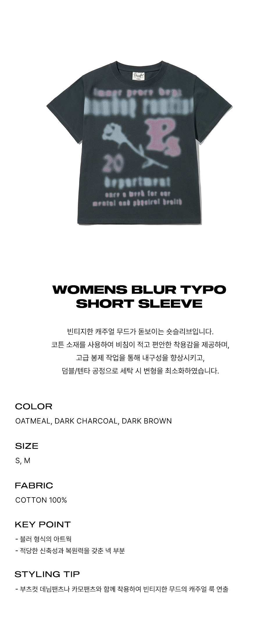 피지컬 디파트먼트 우먼즈 블러 타이포 반팔티셔츠 차콜
