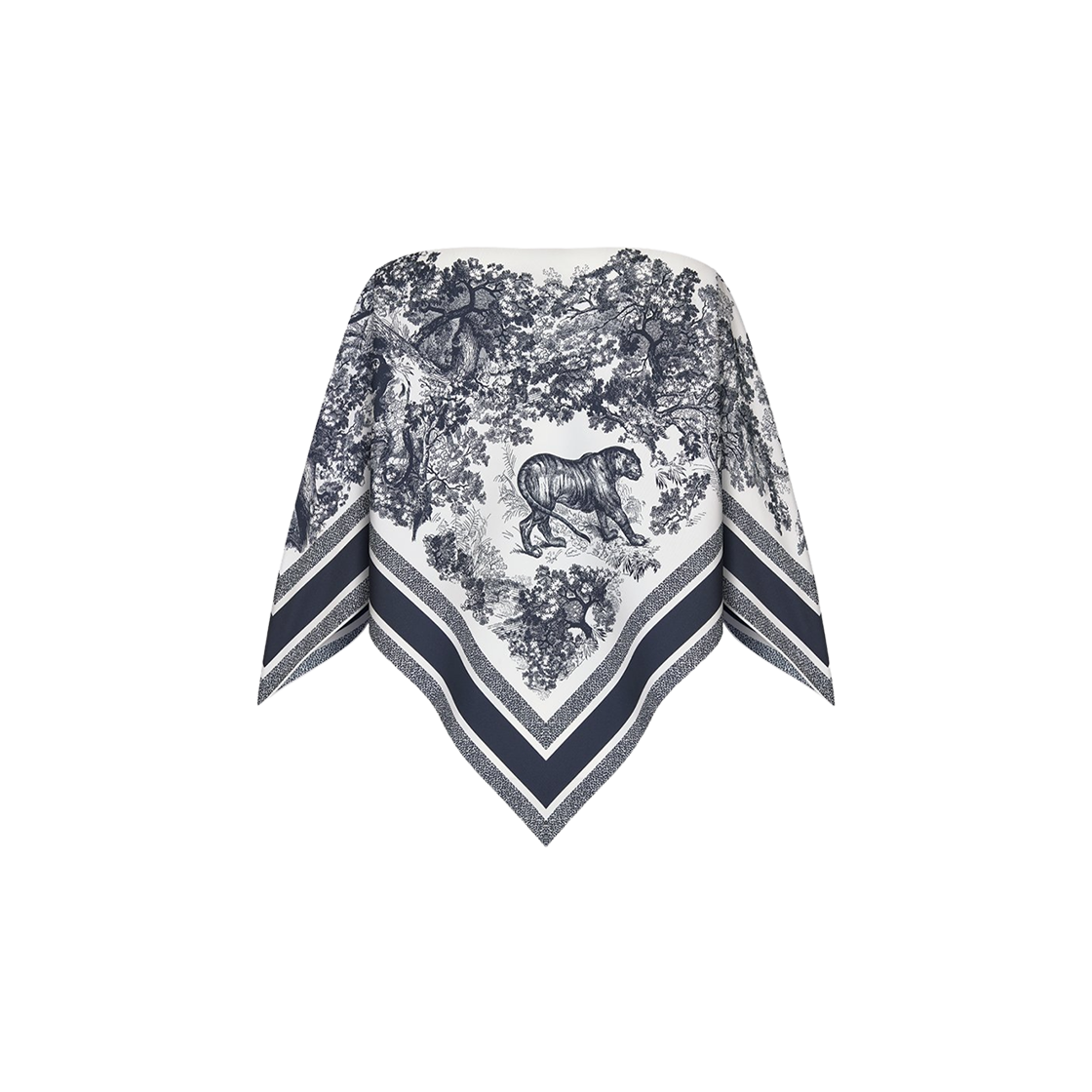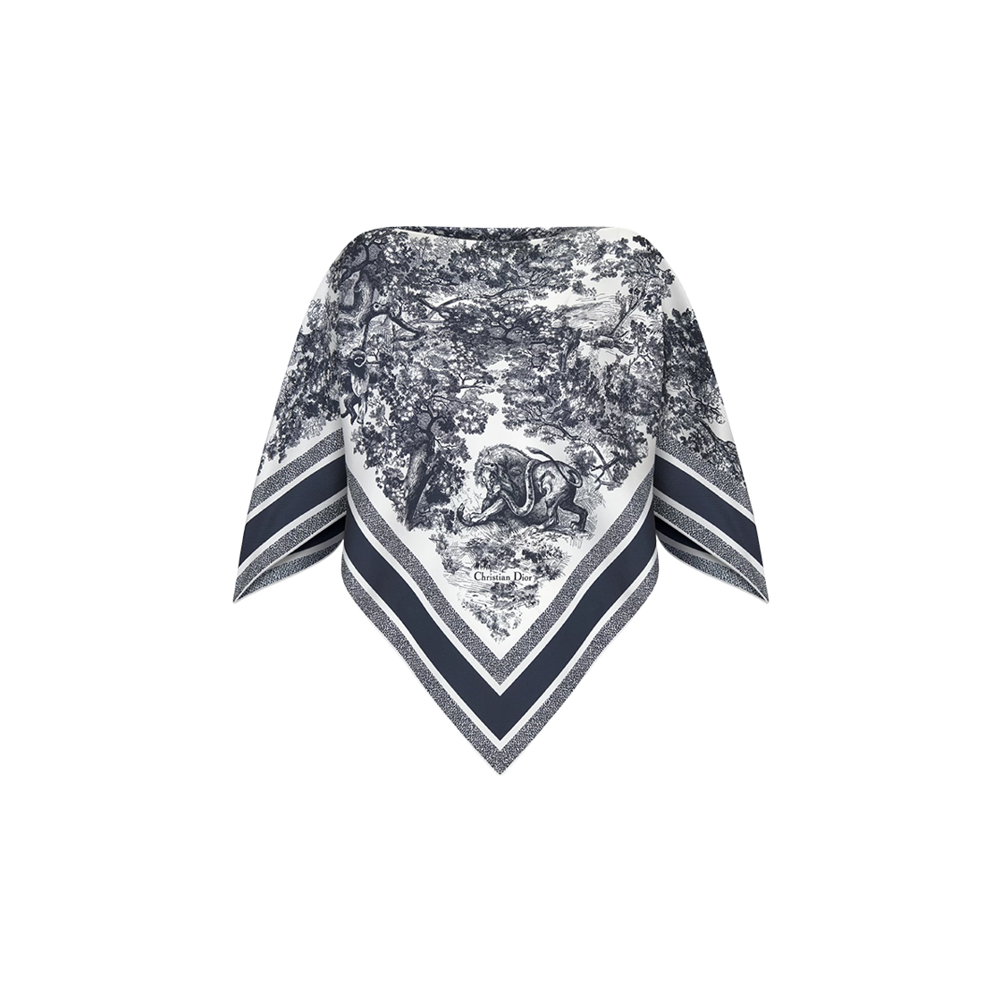 (W) 디올 트왈 드 주이 소바쥬 디올 실크 탑 에크루 네이비 블루 실크 트윌