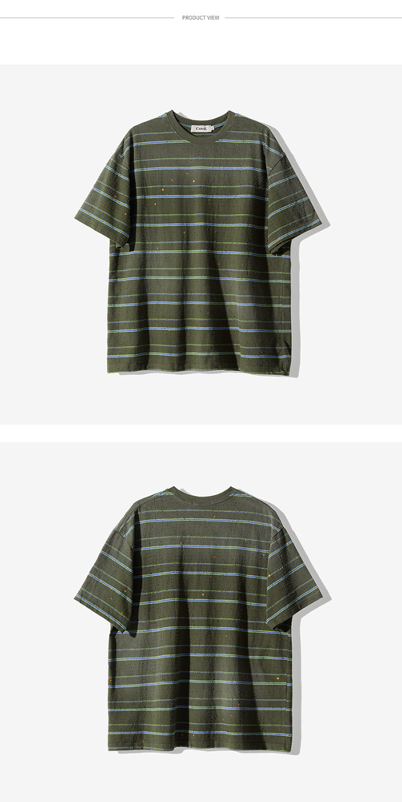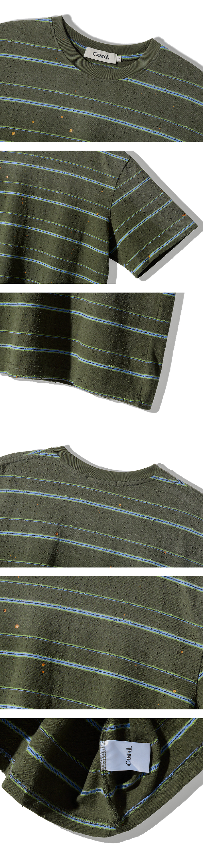 Cord Artifact Damaged Stripe T-Shirts Olive