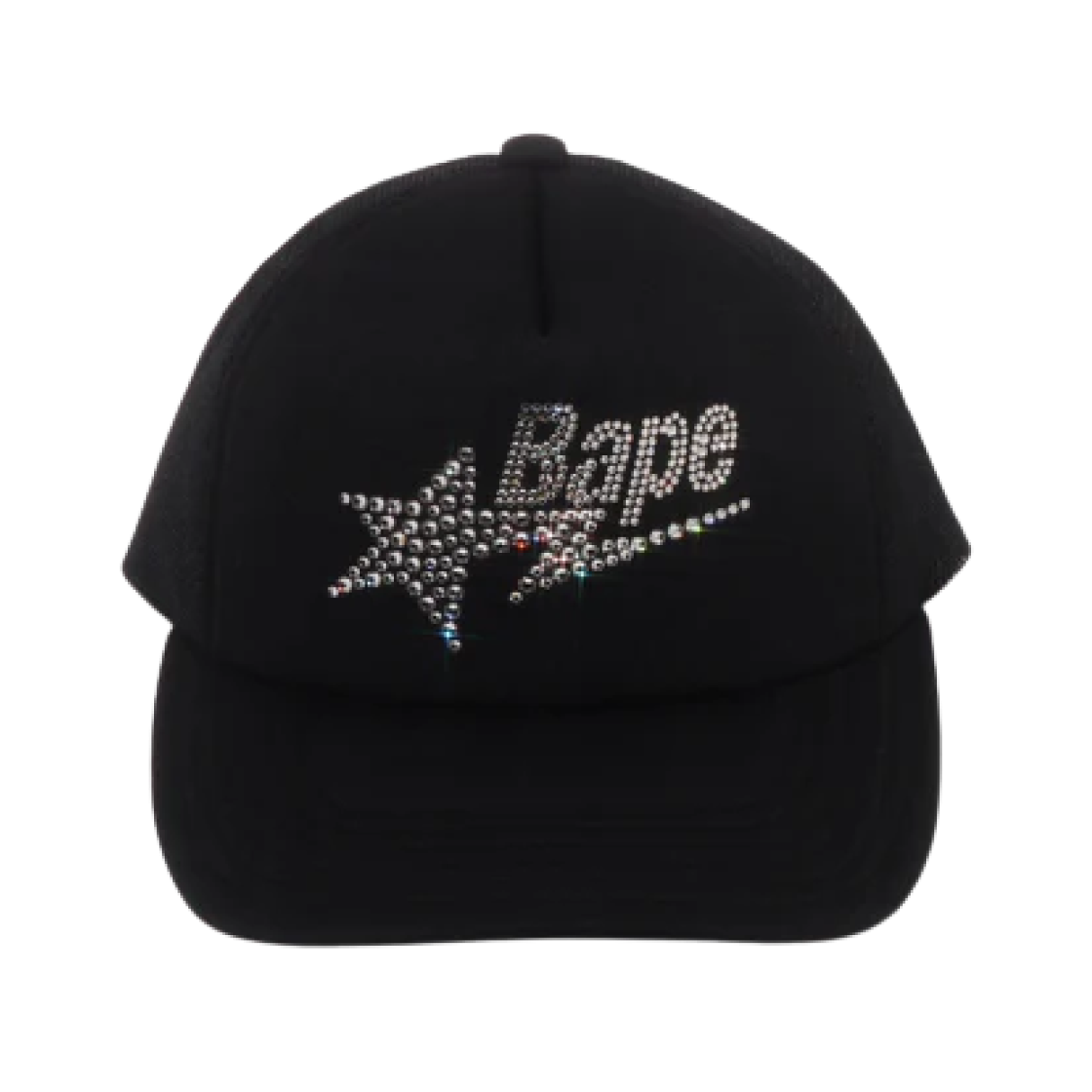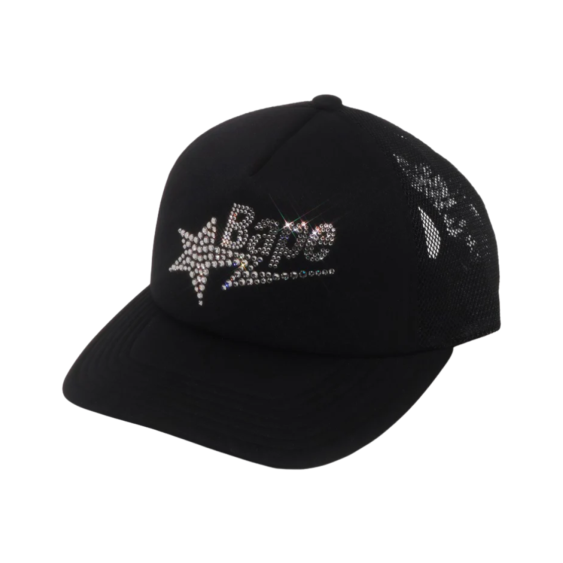 (W) 베이프 크리스탈 스톤 베이프 스타 로고 메쉬 캡 블랙