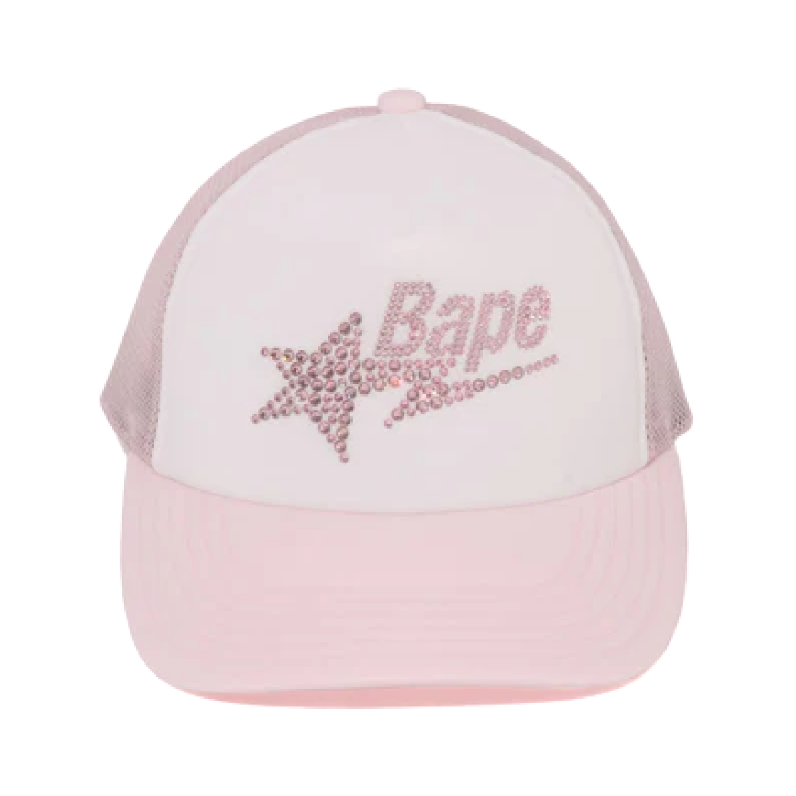 (W) BAPE Crystal Stone BAPE Sta Logo Mesh Cap Pink