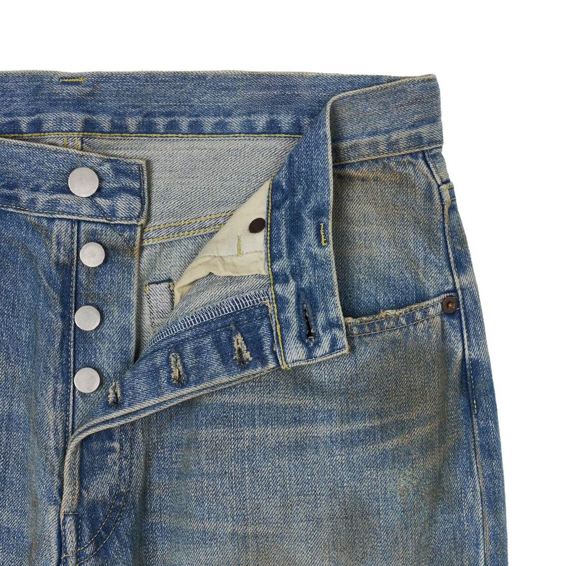 독특한 가공감이 특징인 슈타인의 플레어 데님 진입니다. - 스톤 워시, 블리치, 오버다이, 스프레이, 수작업 데미지 등 다양한 가공 과정을 거쳐 깊이 있는 데님 표현 - 자연스러운 에이징 - 레귤러 핏 - 플레어 실루엣 - 12온스 빈티지 데님 - 버튼 플라이 여밈