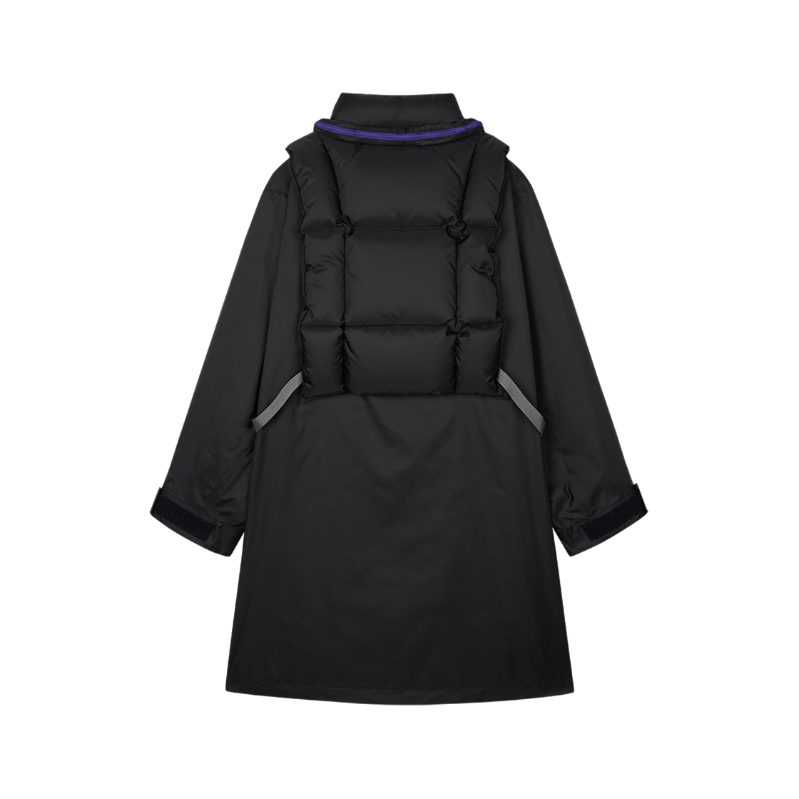 레이어링한 듯한 연출이 가능한 컬러비콘 25WBM-C01132 코트 블랙입니다. - 패딩 베스트가 포함되어 있음 - 후드를 지퍼 안에 수납하거나 꺼내어 연출할 수 있음