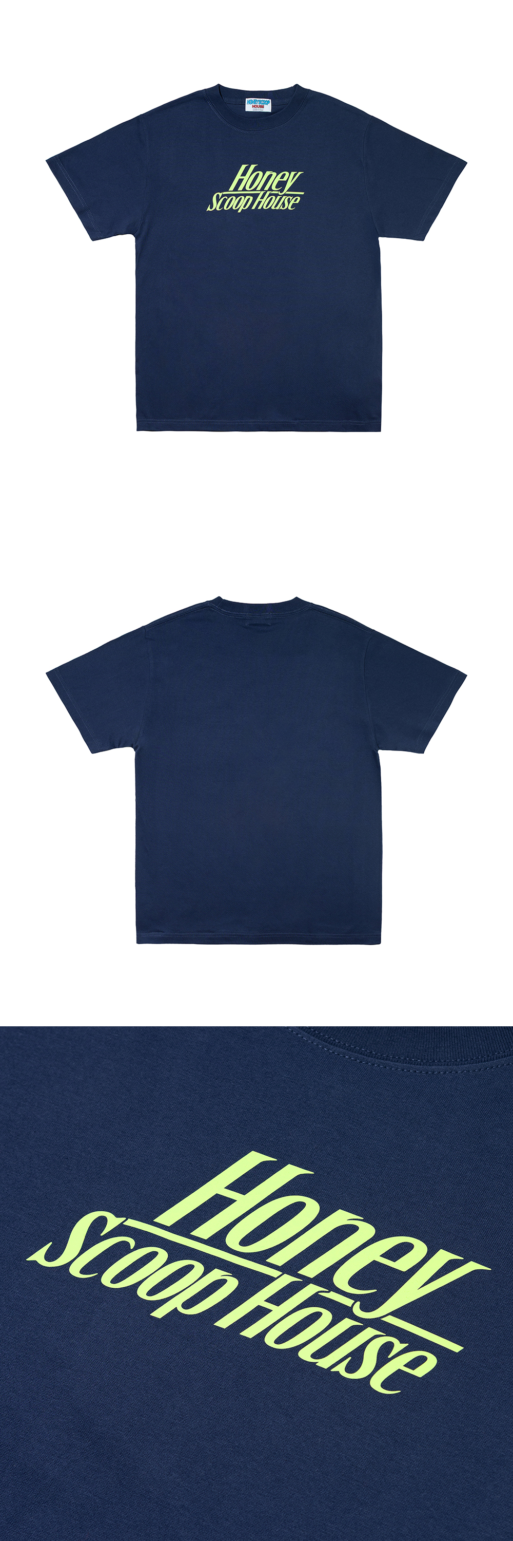 HONEY SCOOP HOUSE RC LOGO TEE INDIGO 100% COTTON SHORT SLEEVE GRAPHIC TEE