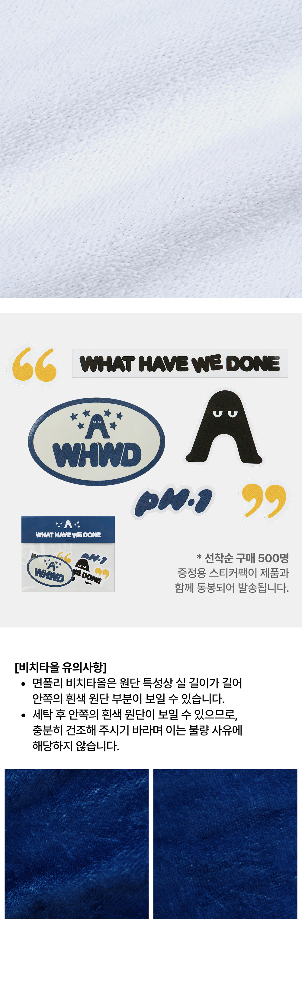 면폴리 비치타올은 원단 특성상 실 길이가 길어 안쪽의 흰색 원단 부분이 보일 수 있습니다.