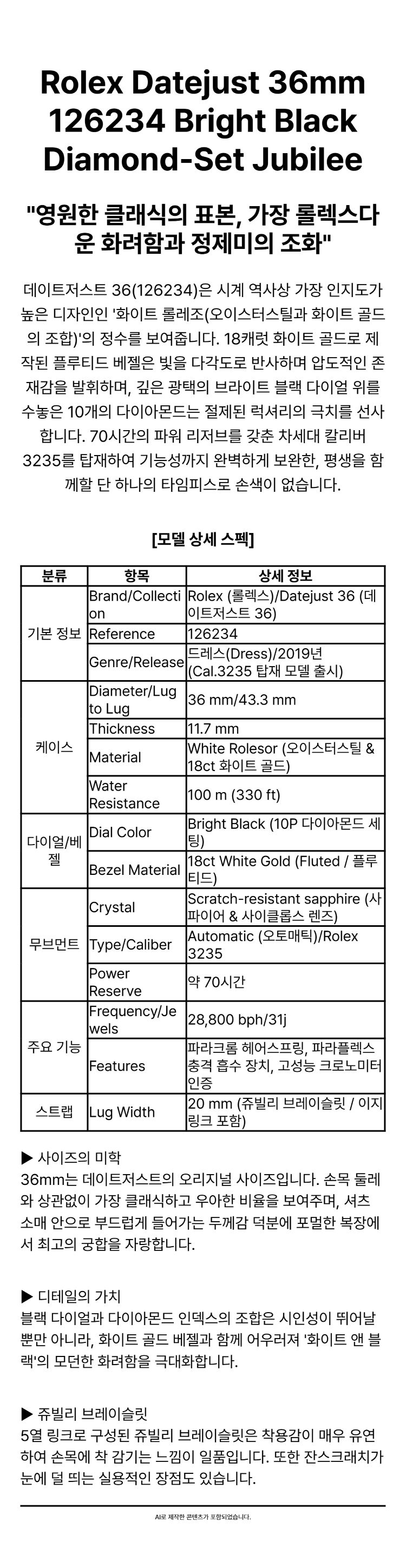 롤렉스 데이트저스트 36mm 126234 브라이트 블랙 다이아 셋팅 쥬빌리