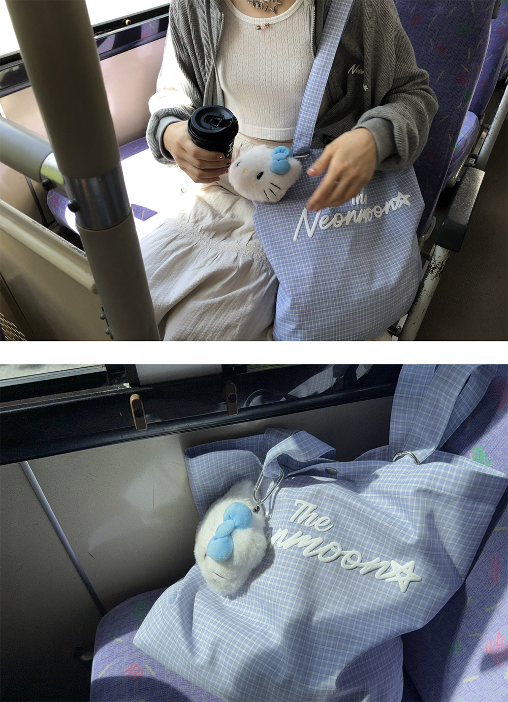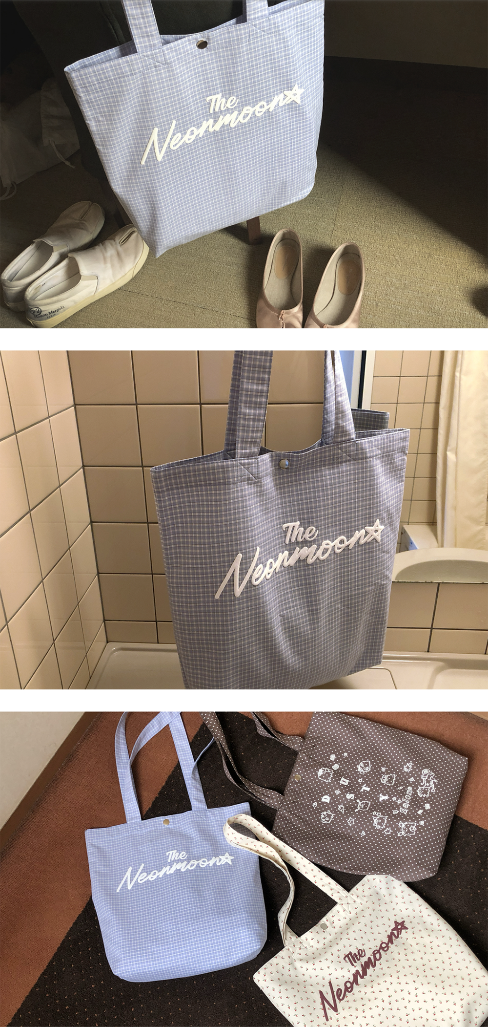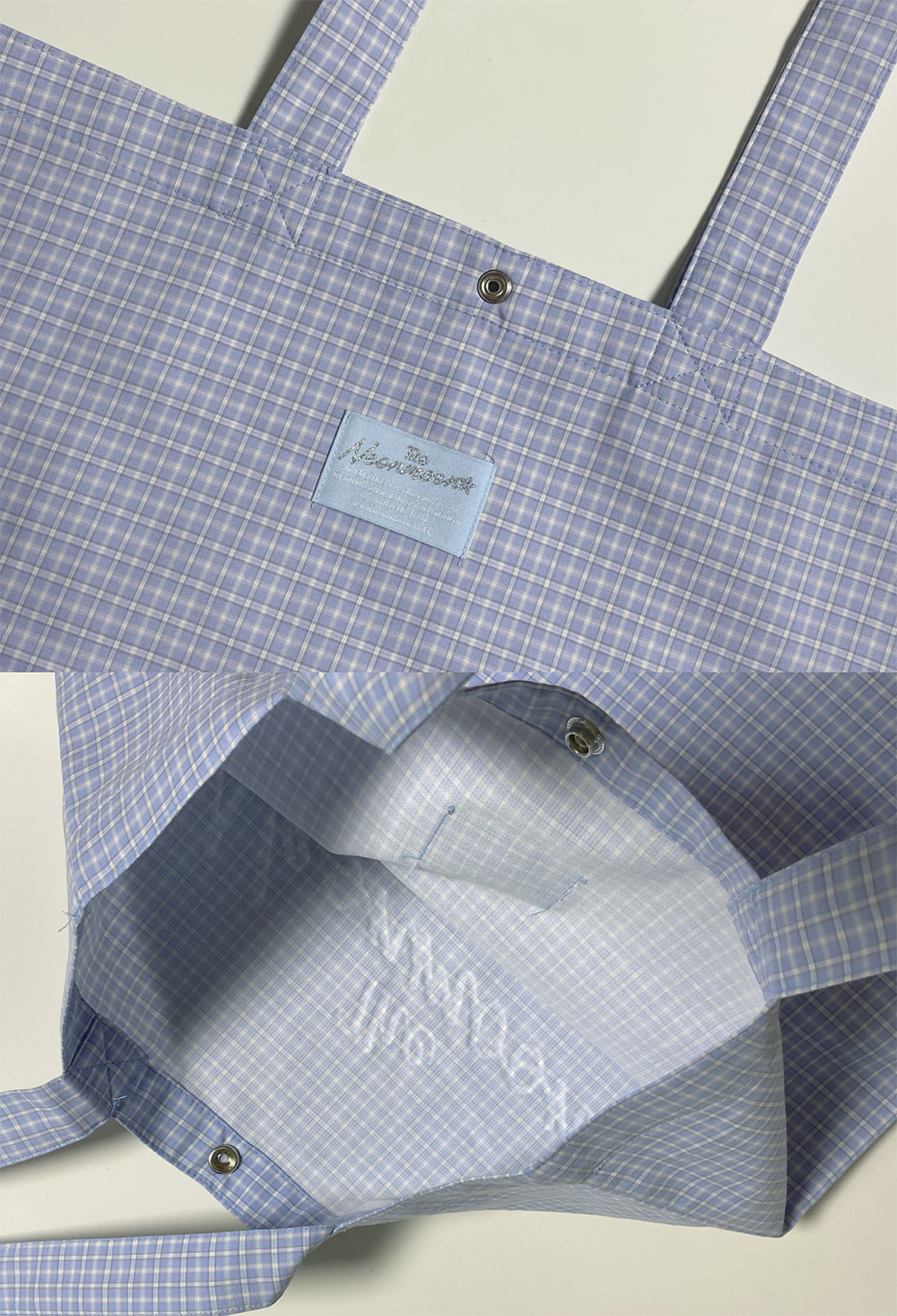 더네온문 토트백 블루 체크